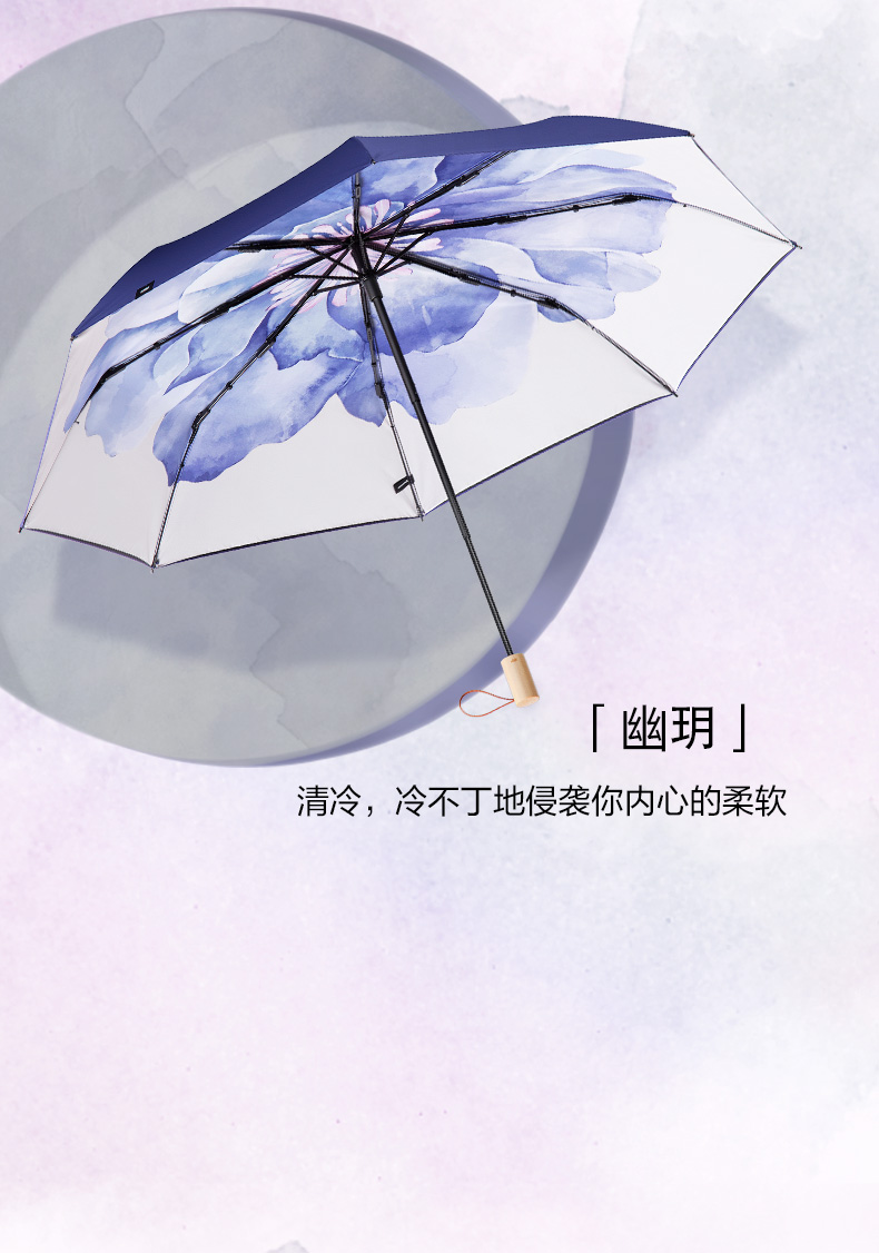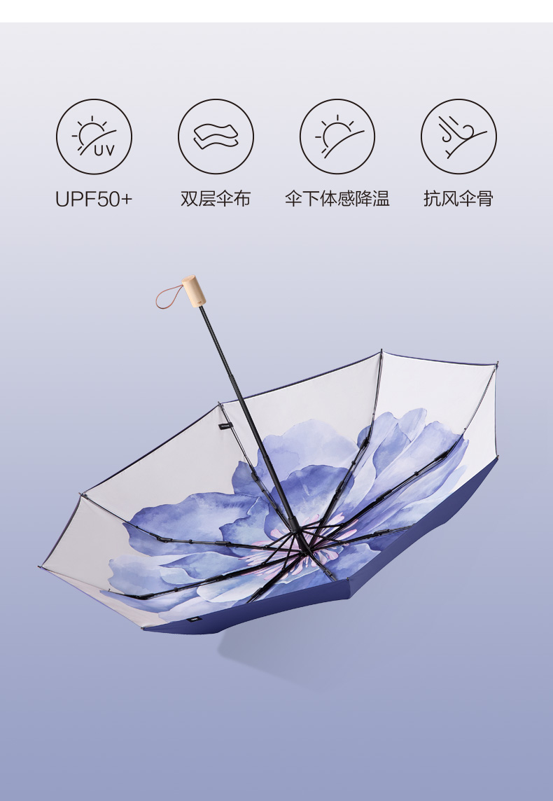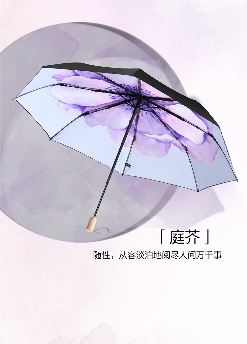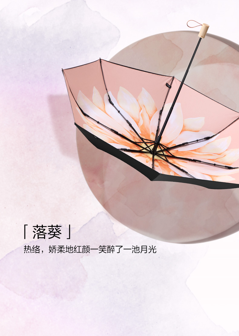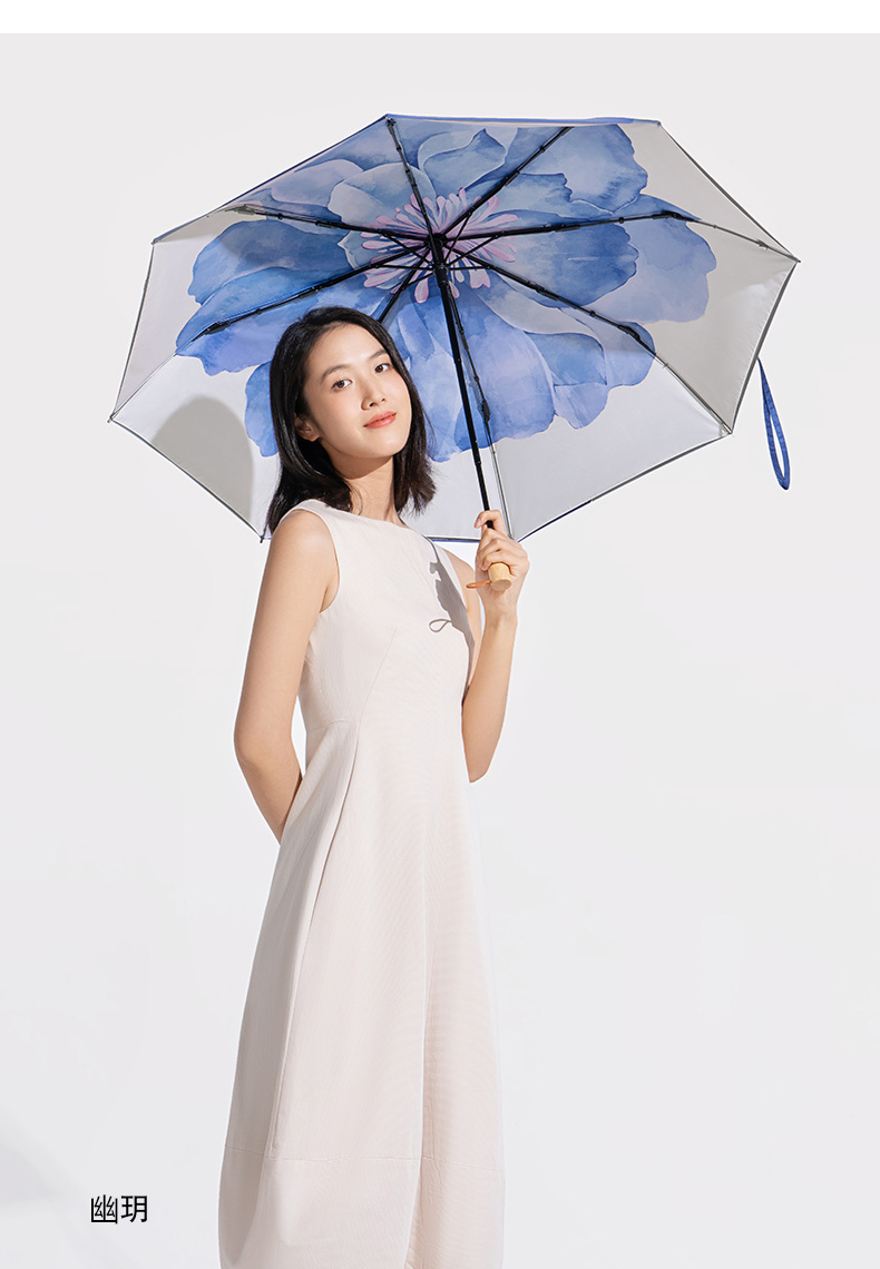 蕉下2021年双层小黑伞系列三折伞大花B防紫外线