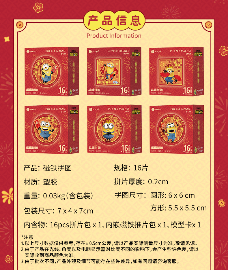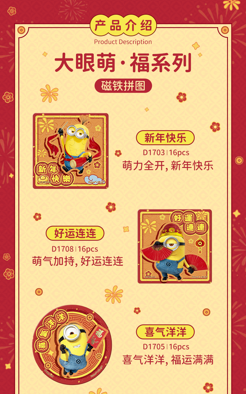 16片 磁铁拼图 小黄人 大眼萌·福系列 D1703/D1705/D1706/D1707/D1708/D1709