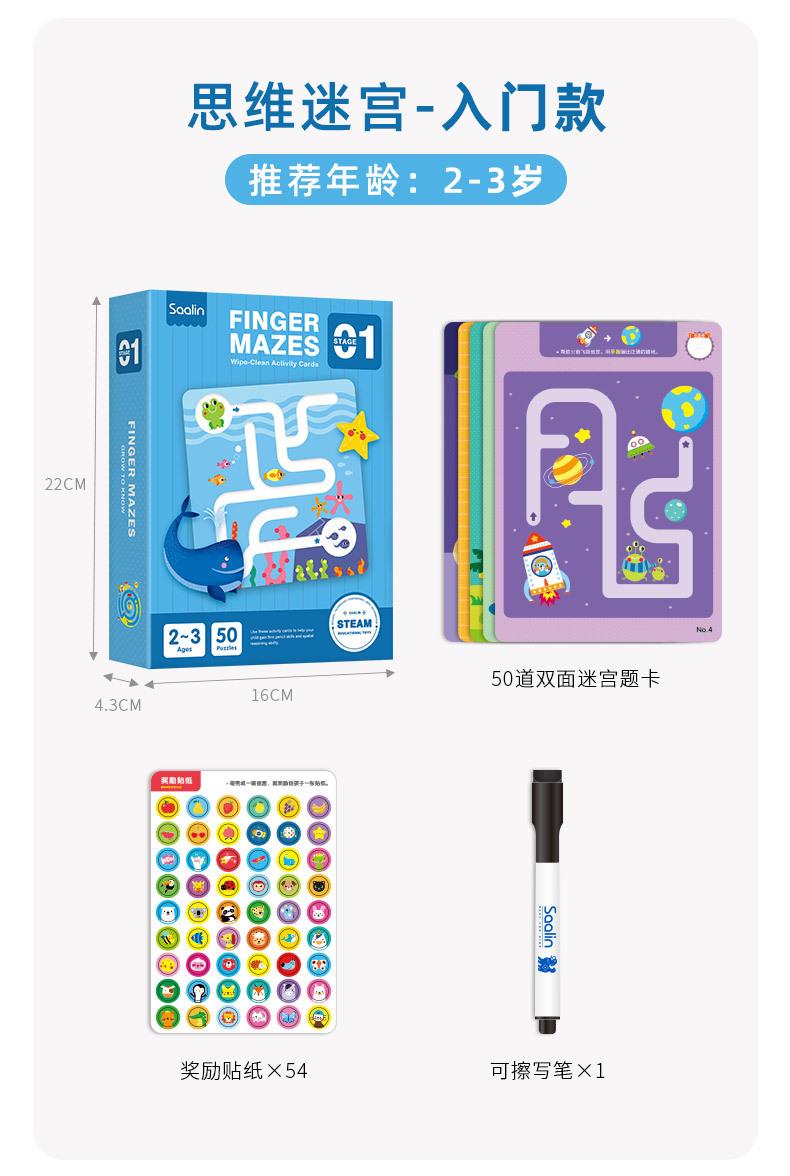 saalin莎林分龄进阶思维迷宫训练卡可反复擦写儿童专注力益智玩具