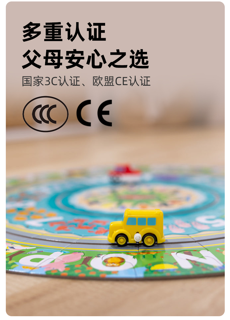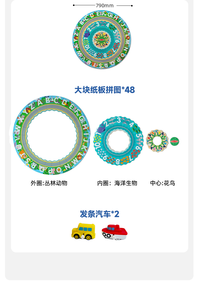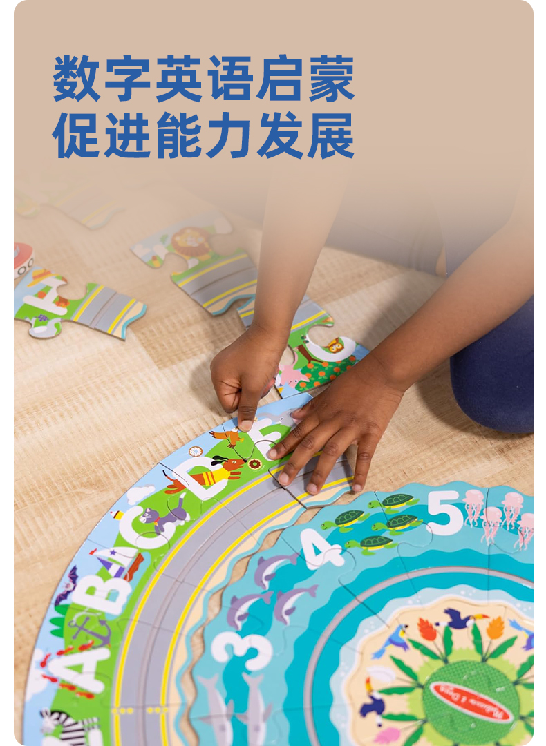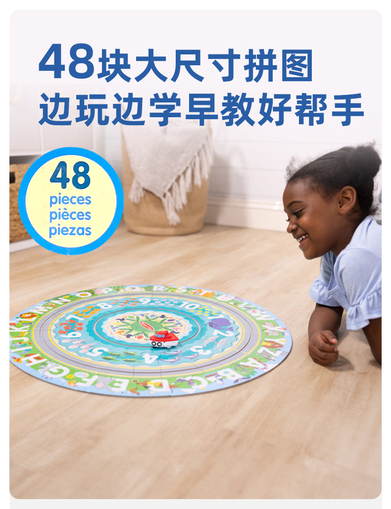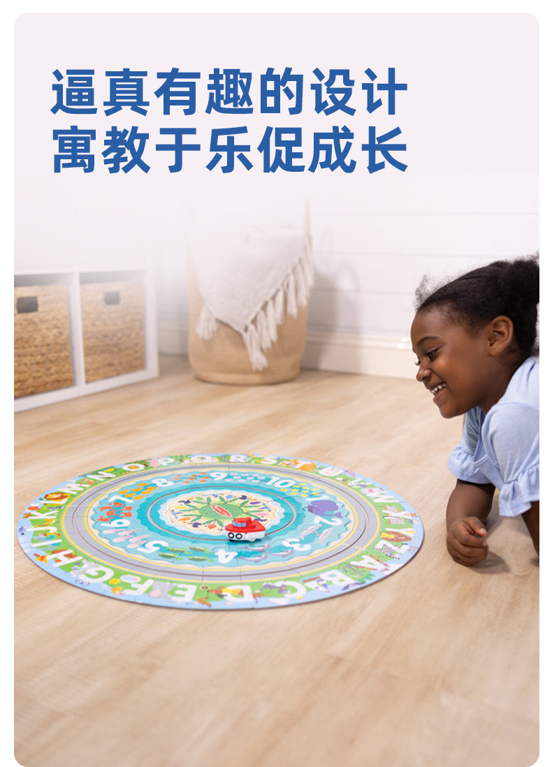 *美国Melissa&Doug圆形海岸探险互动游戏地板拼图套组(纸质+2辆轨道小车)儿童幼儿拼图益智玩具