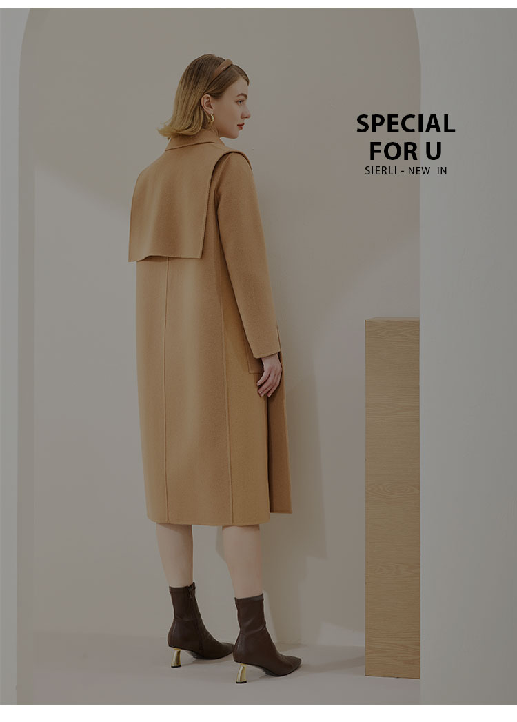 MD917斯尔丽2023冬季新款翻领干练气质可脱卸两件套羊毛大衣女外套