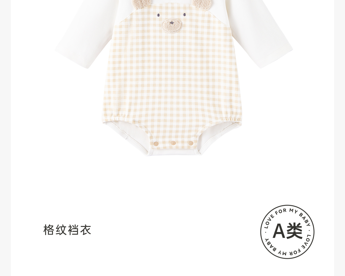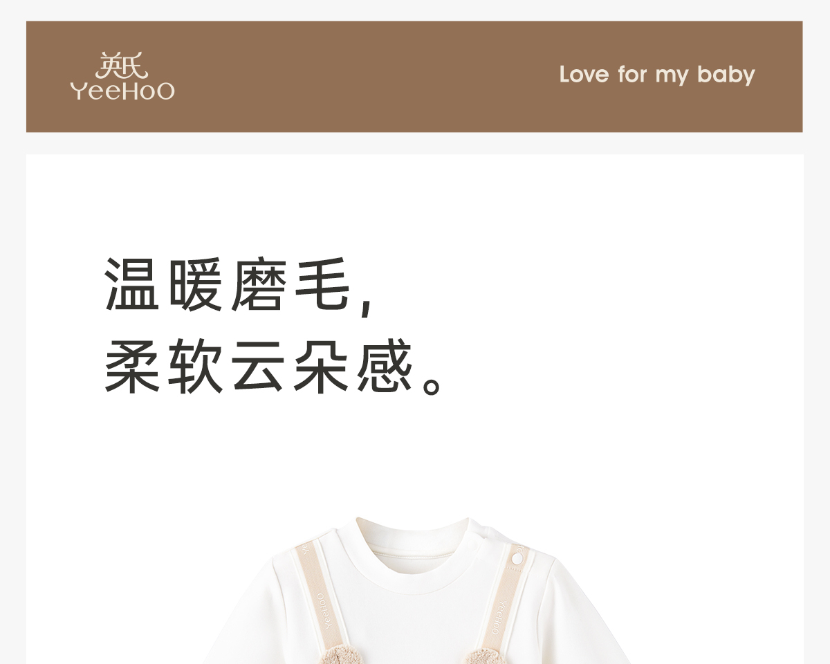英氏宝宝哈衣男女宝萌熊开肩家居连体衣春秋新款YZJAJ1P013A