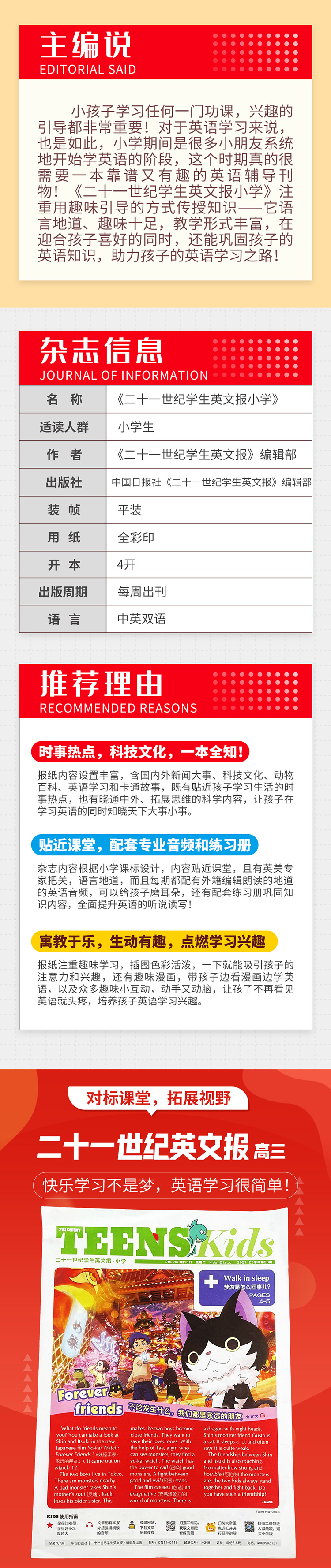 二十一世纪学生英文报小学(21世纪英语报) 2025年9月起订 1年共40期 每月月底发货