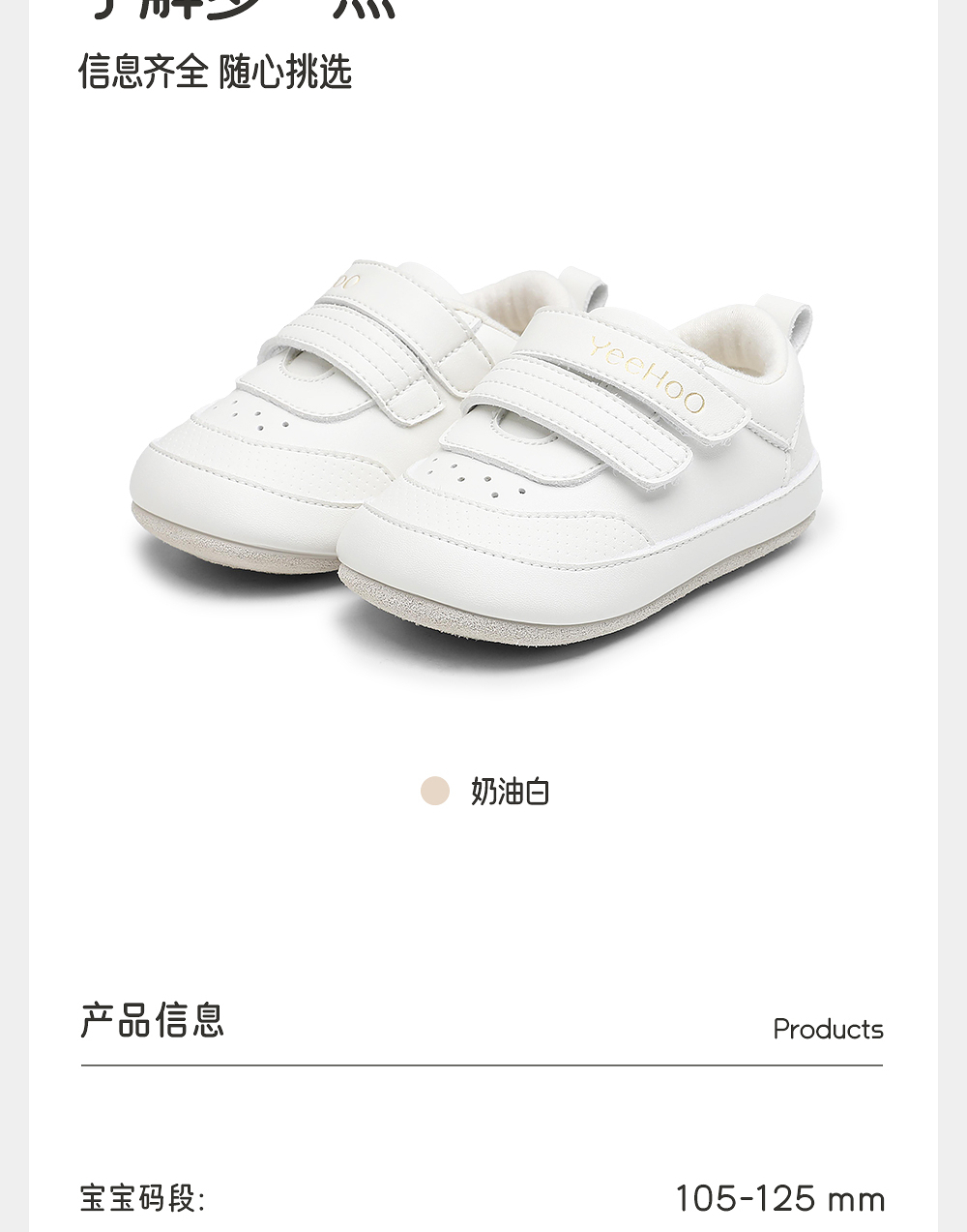 英氏婴儿童鞋抗菌女宝宝小白鞋软底防滑女童步前鞋子YFXHJ3R110A