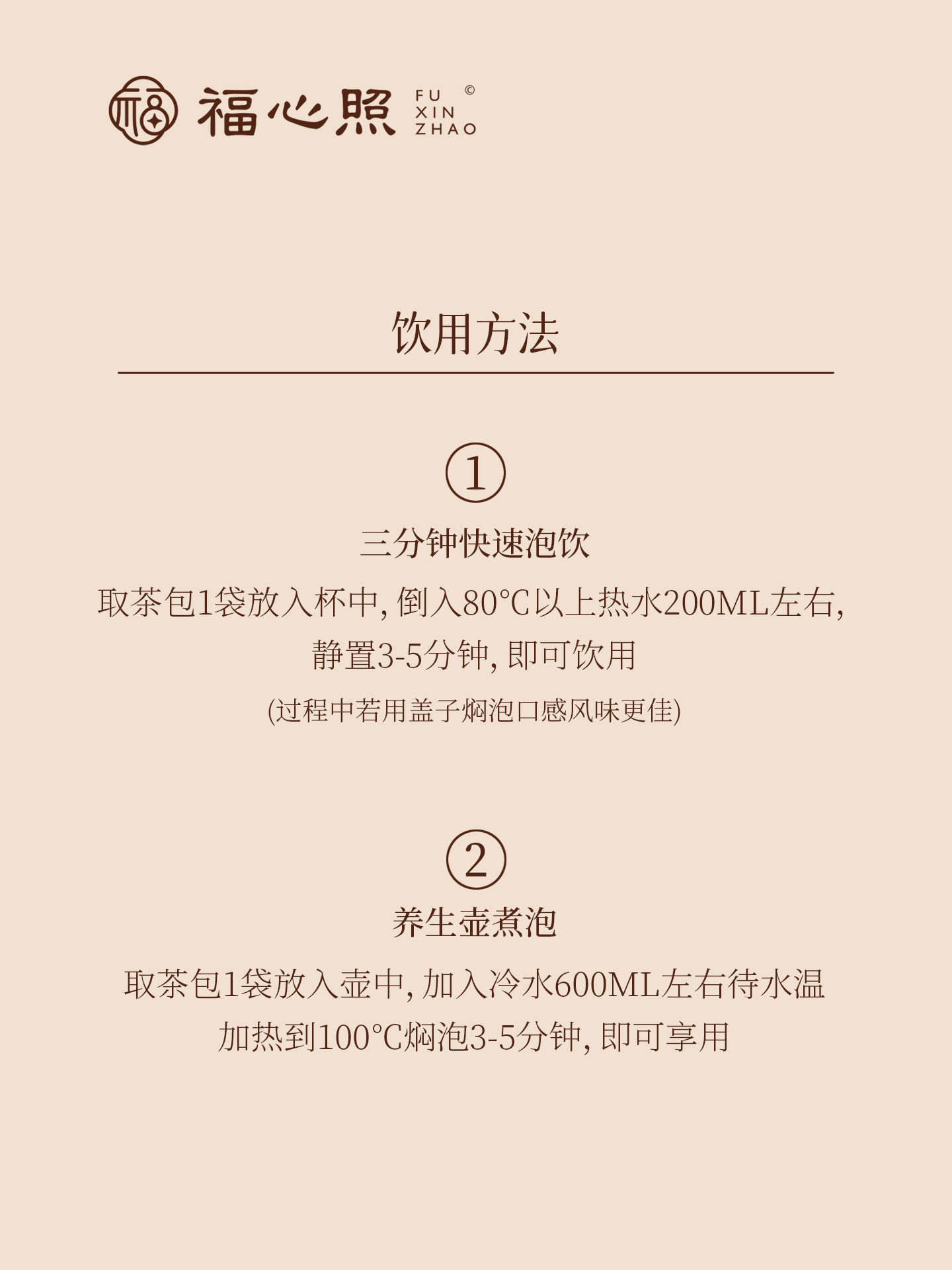 2.养生壶煮茶包:放入壶中,加入冷水600ml左右待水温加热到100℃焖泡3-5分钟,即可享用