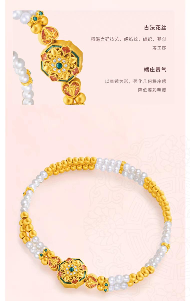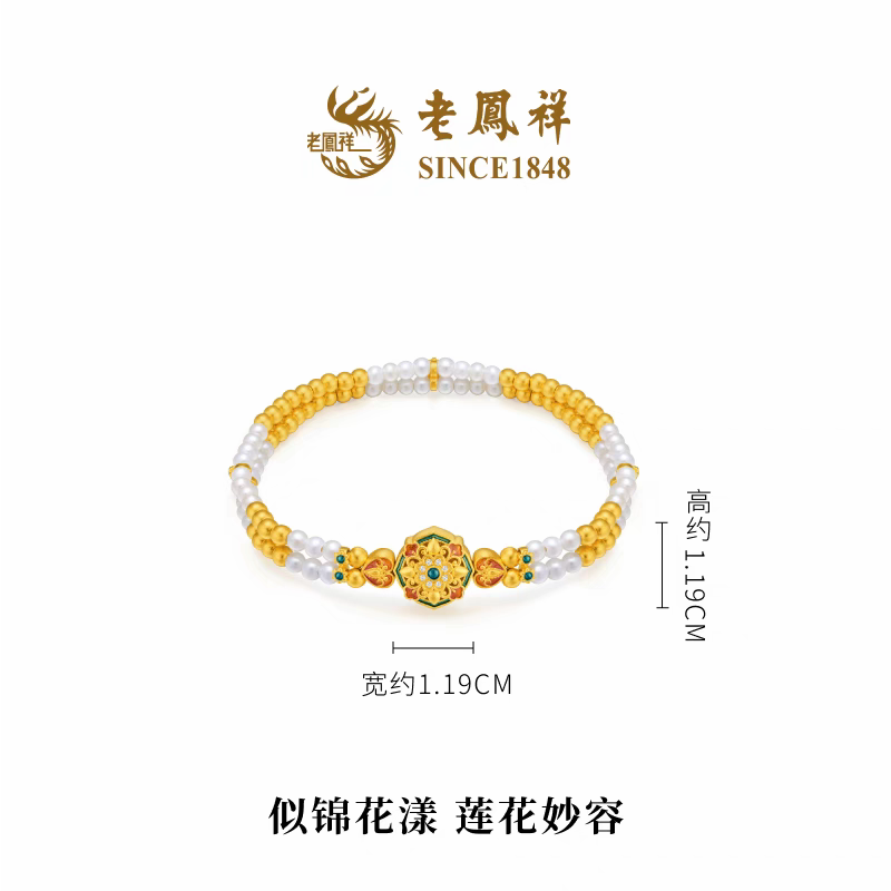 【老凤祥】盛唐风华系列·花唐莲花妙容珍珠钻石镶嵌黄金手串,足金999,老凤祥专属系列,可到我们老凤祥门店自取