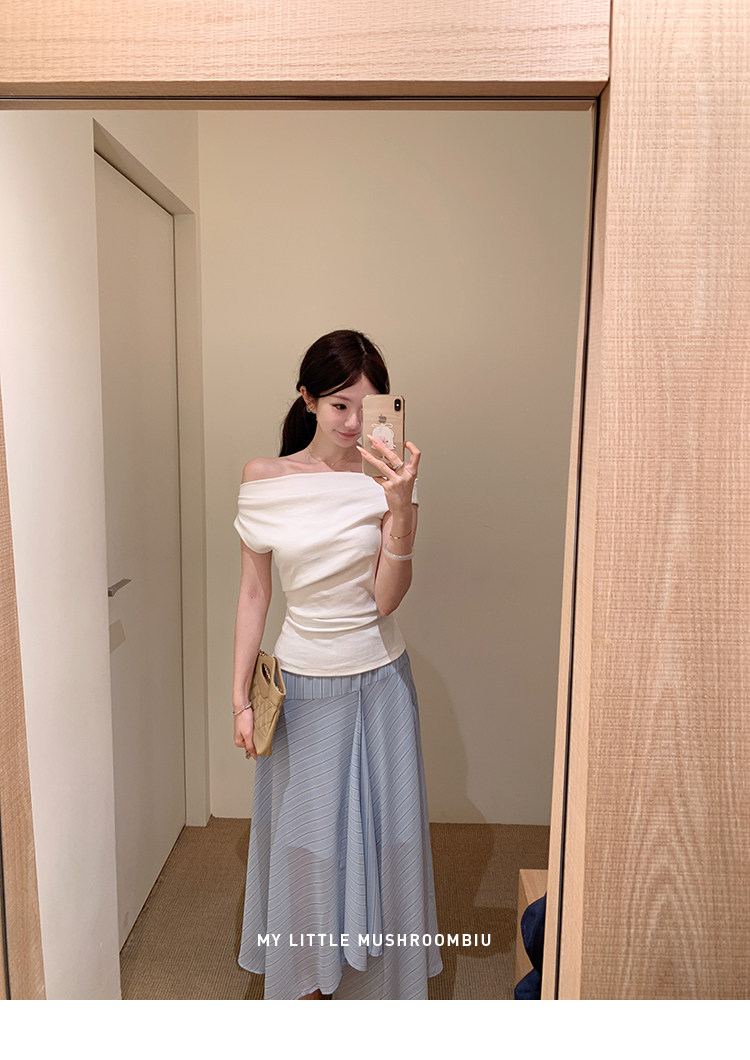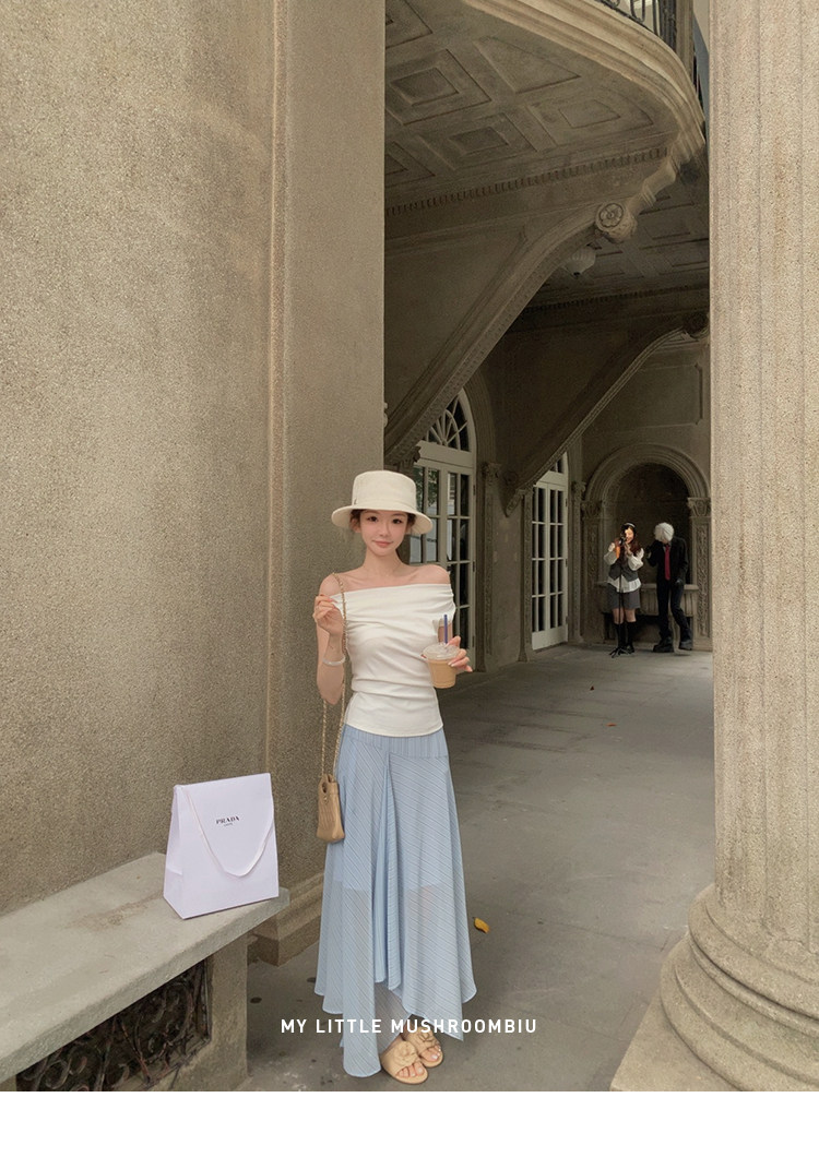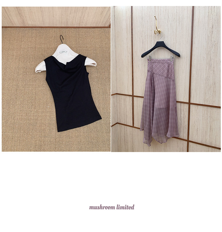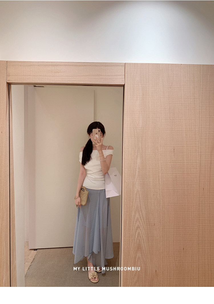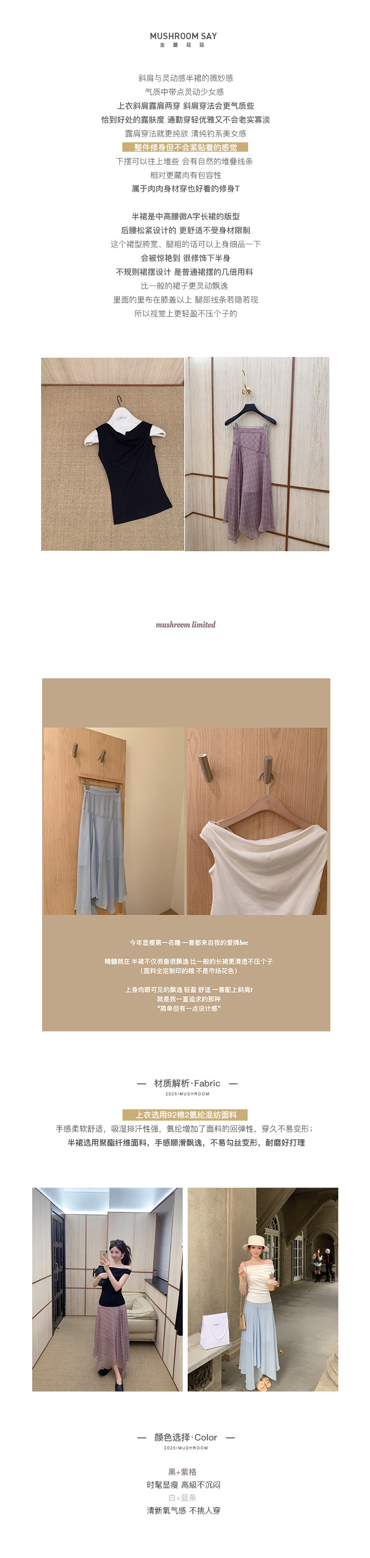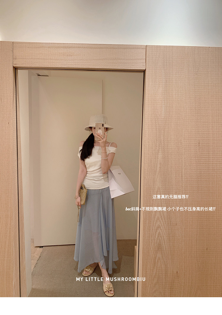 金蘑菇菇 斜肩与灵动感半裙的微妙感/ 荡领top+半裙