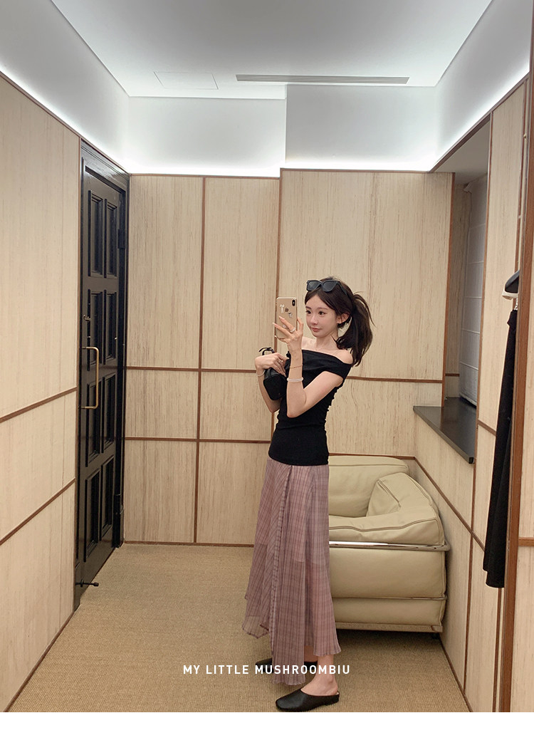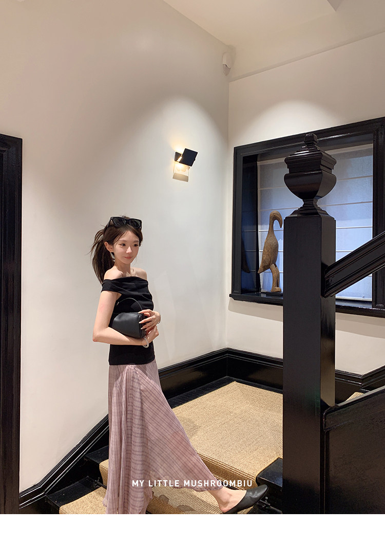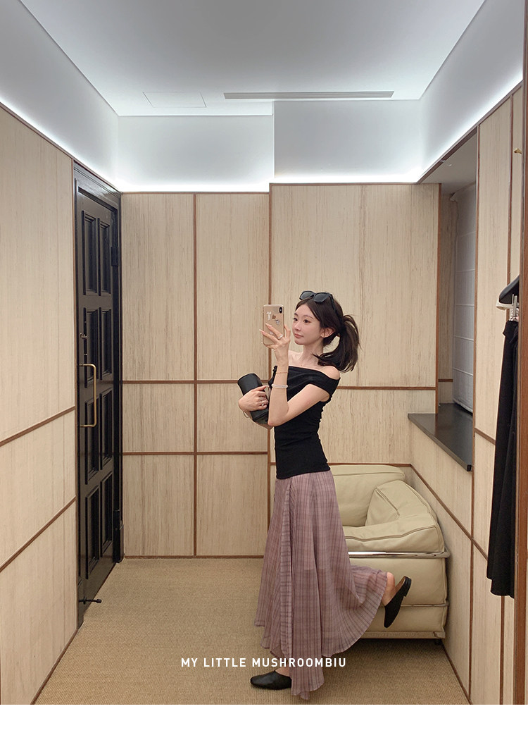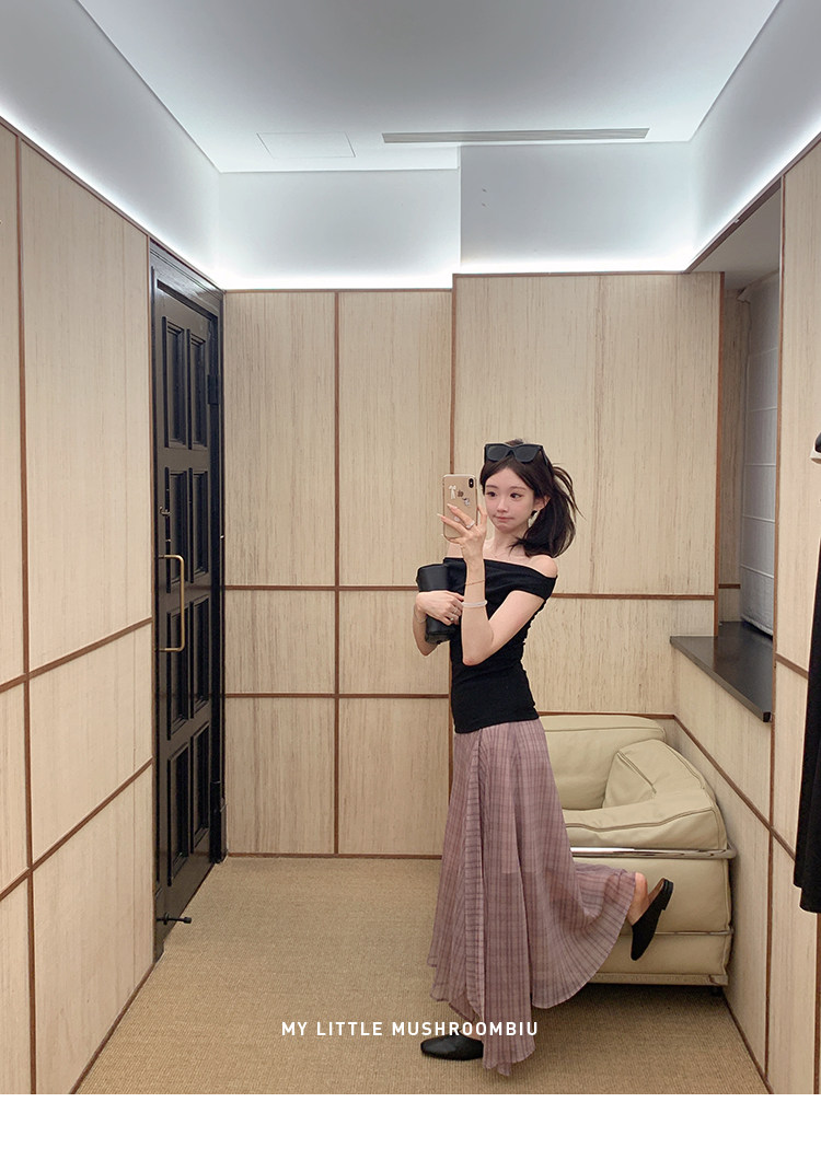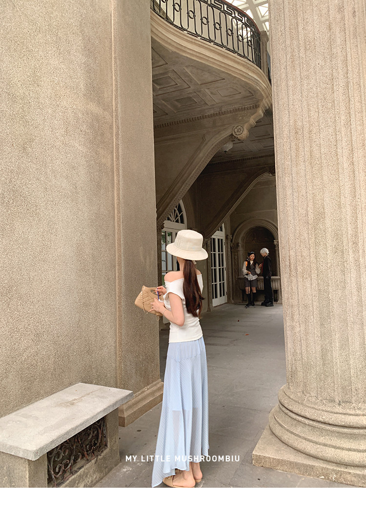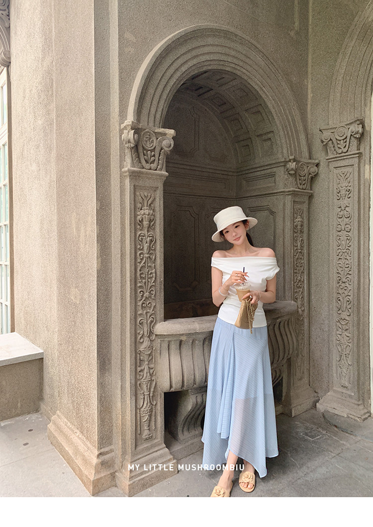 金蘑菇菇 斜肩与灵动感半裙的微妙感/ 荡领top+半裙