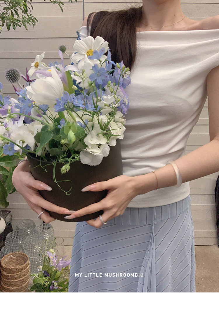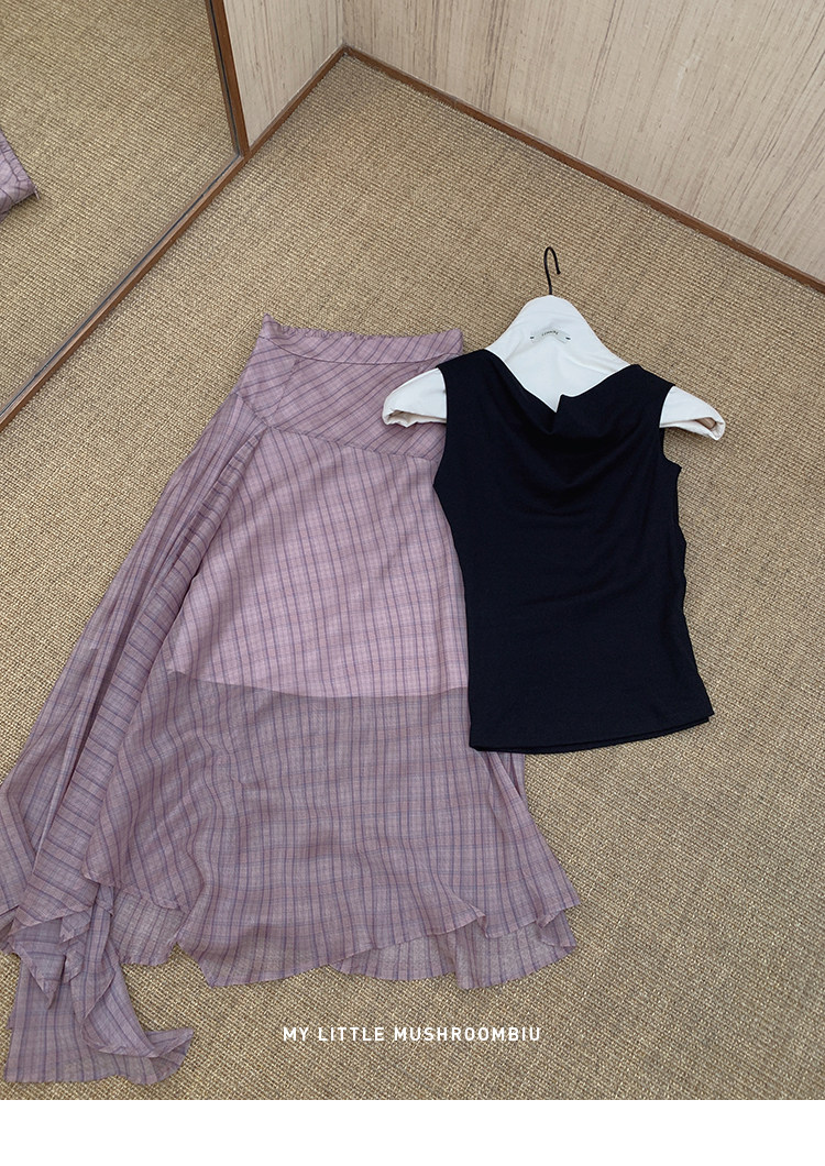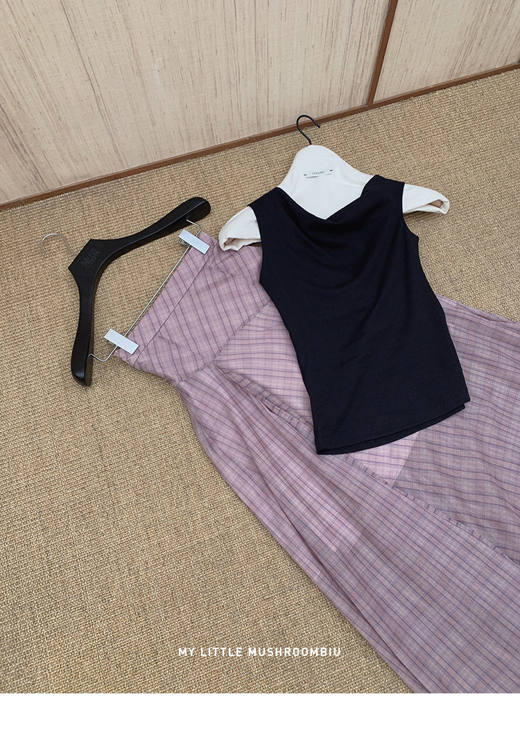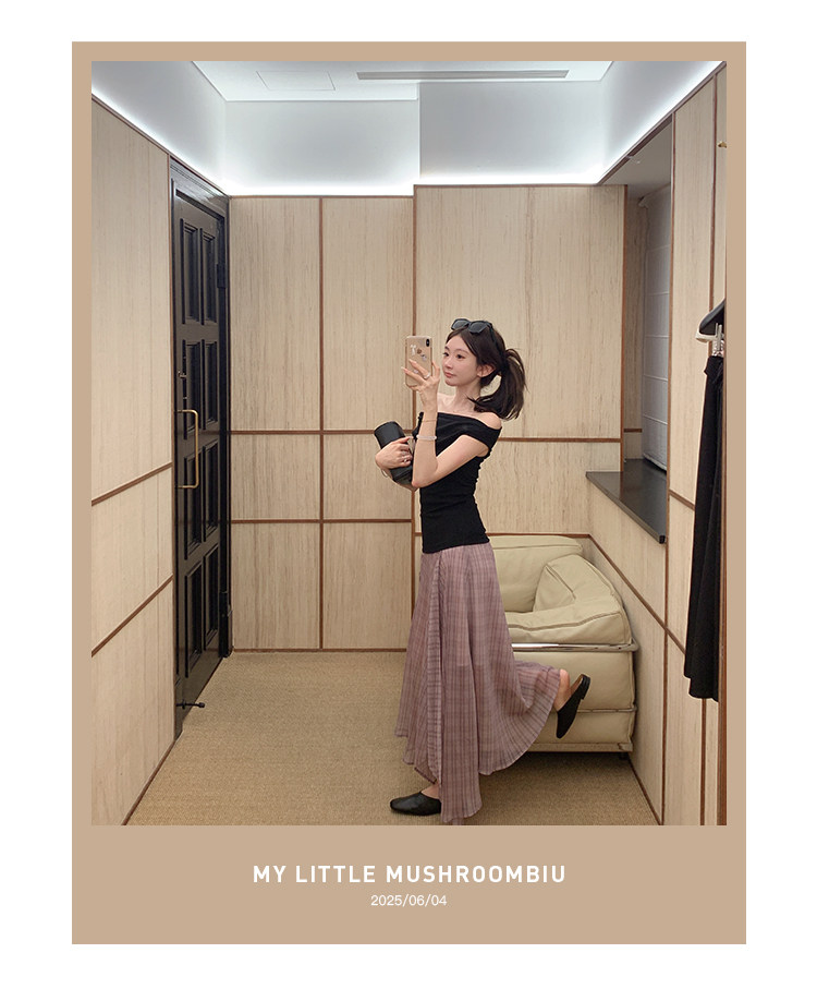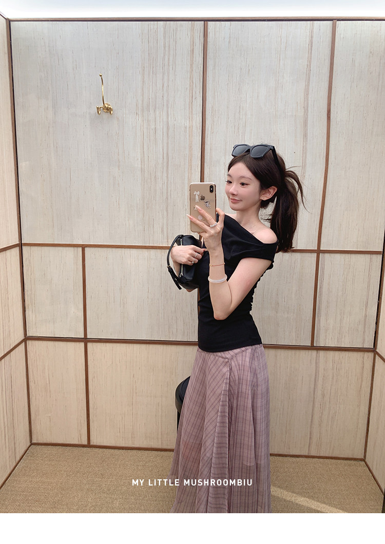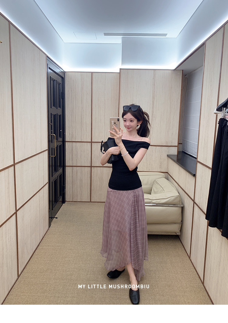 金蘑菇菇 斜肩与灵动感半裙的微妙感/ 荡领top+半裙
