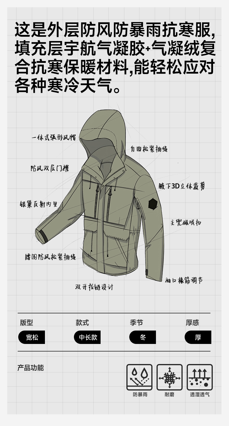 素湃SUPIELD宇航星壳中长款保暖外套冬季气凝胶气凝绒双重抗寒服