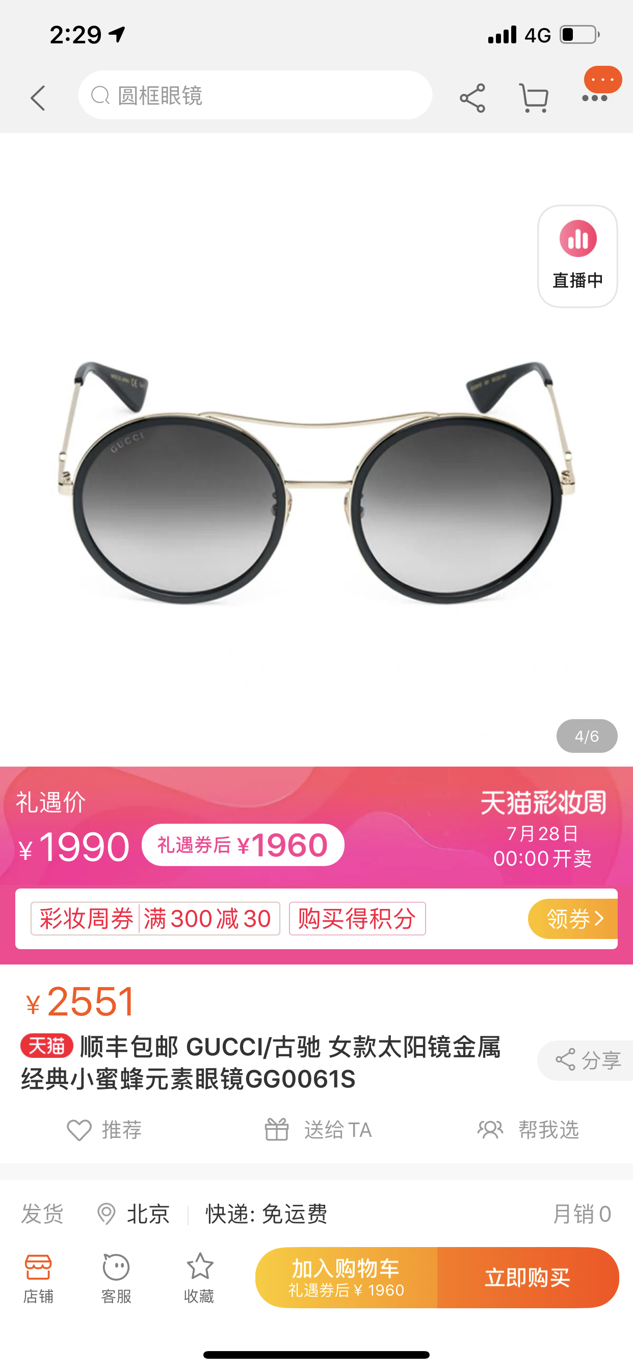 明星同款!Gucci 圆形时尚太阳镜正品上脸惊艳