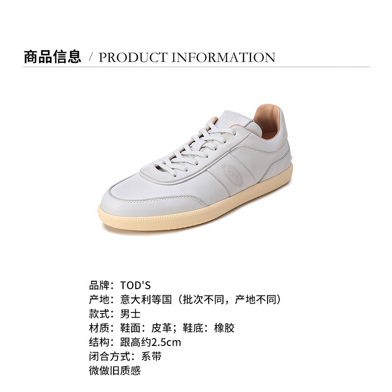 Tod’s/托德斯【22春夏新款】男士皮革微做旧TABS系带休闲运动鞋 XXM68C0DP30WSH