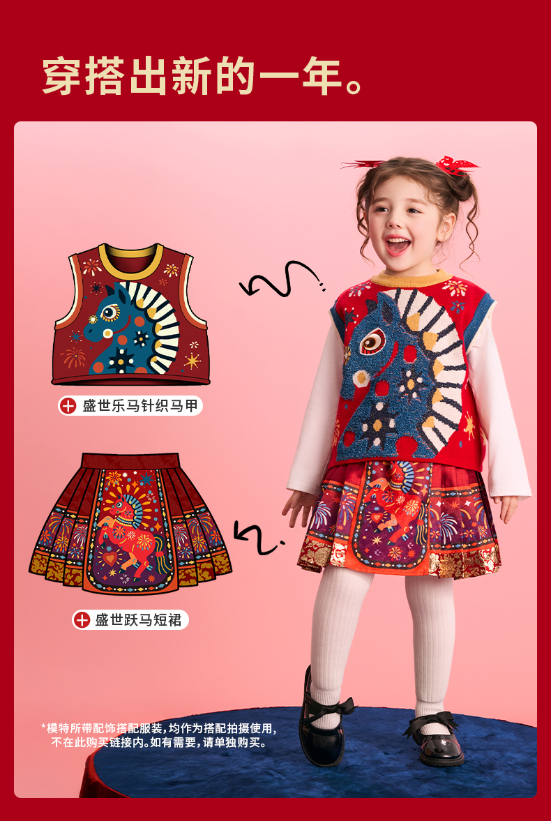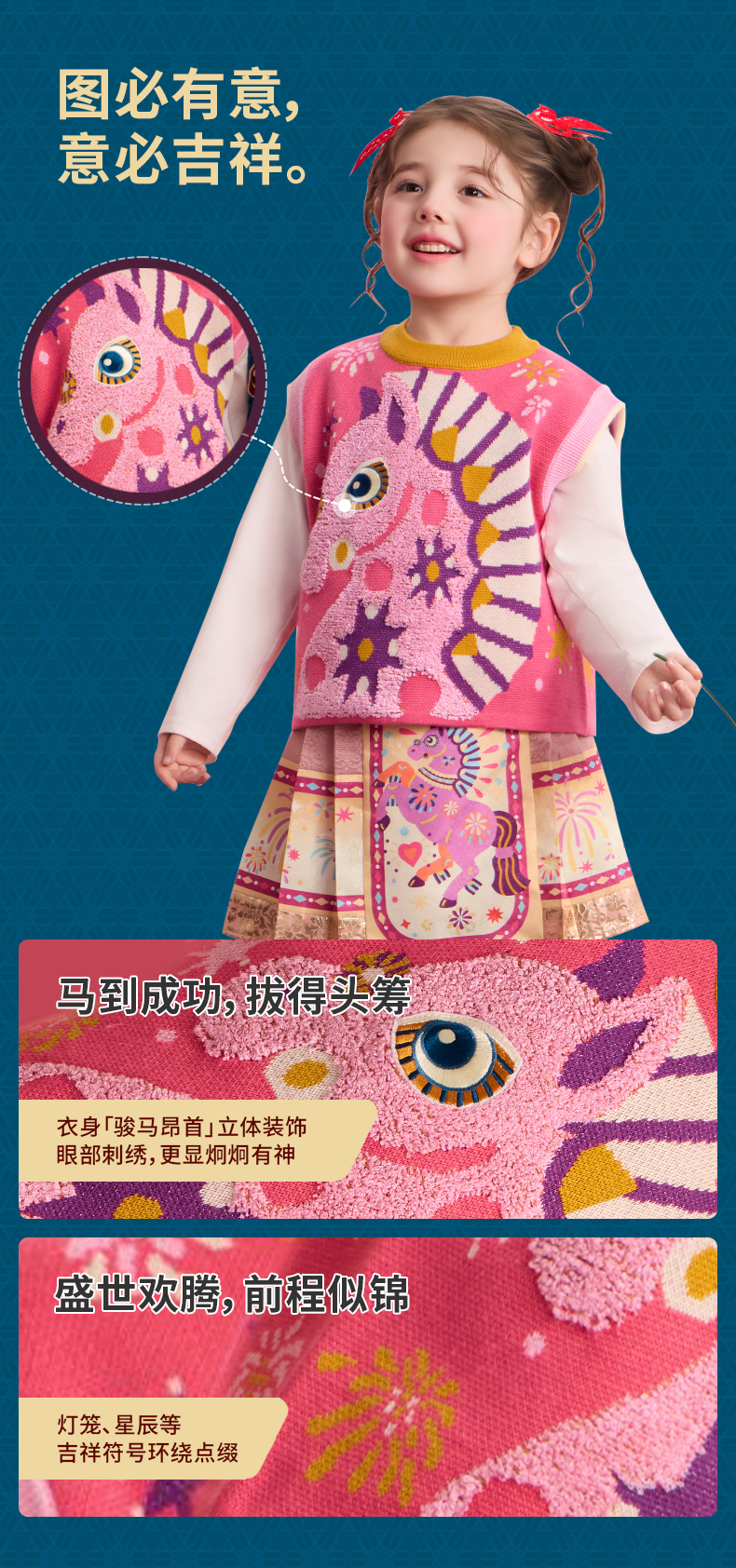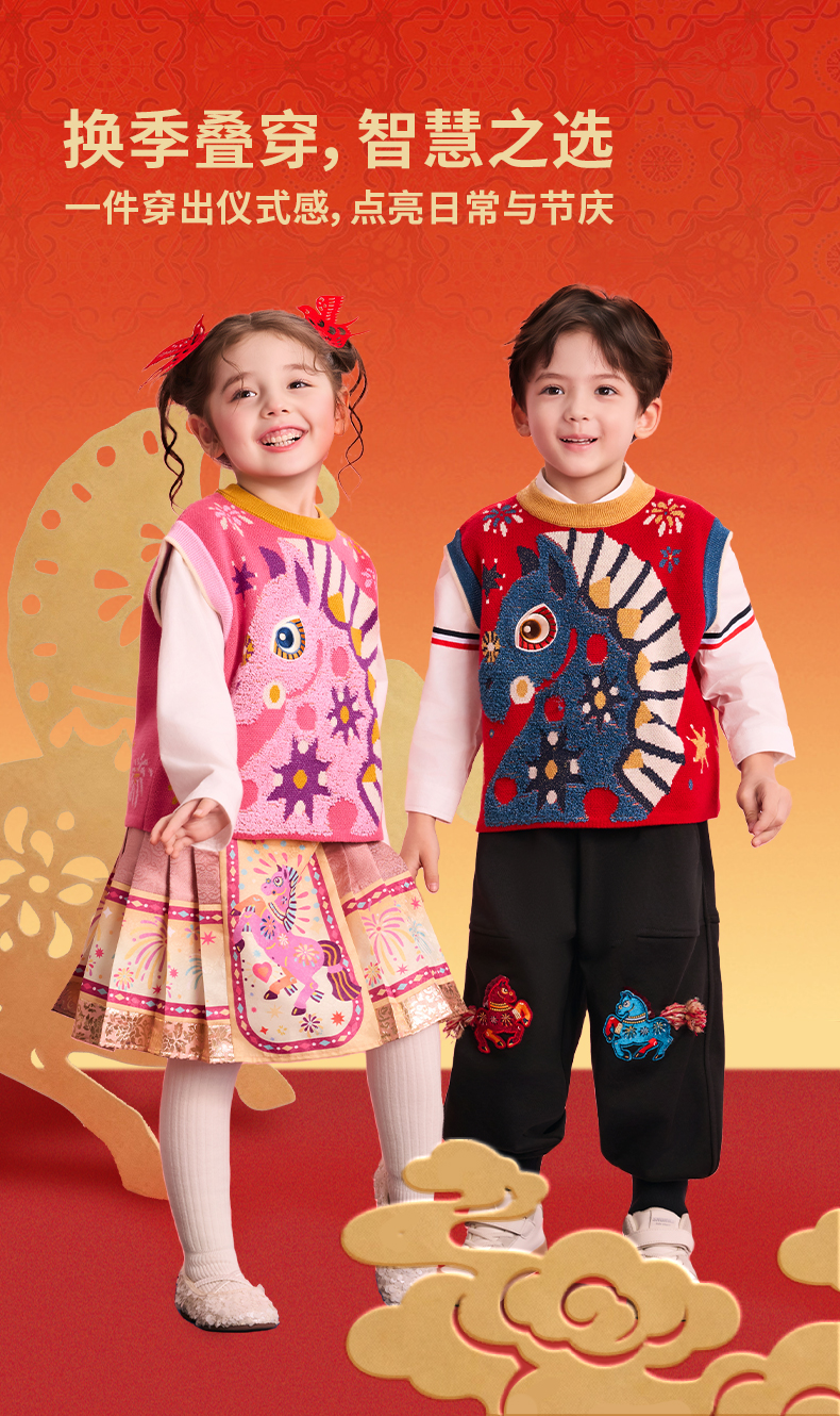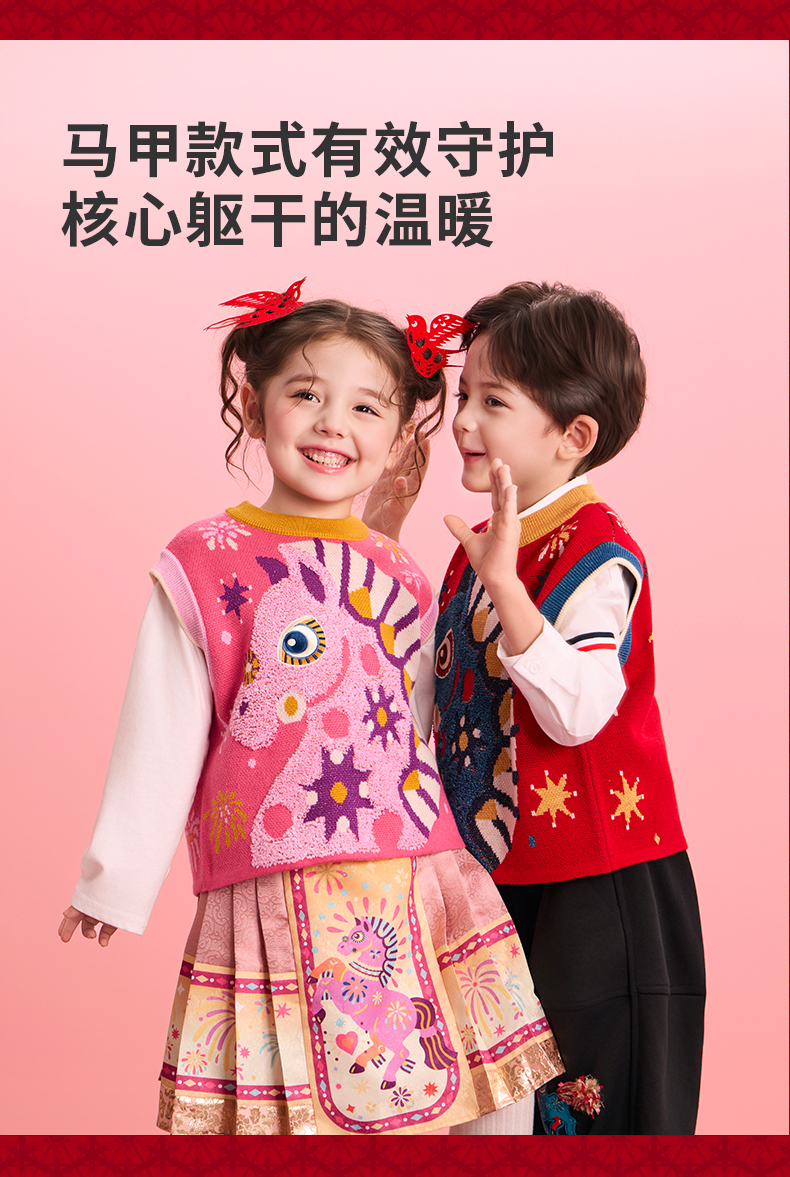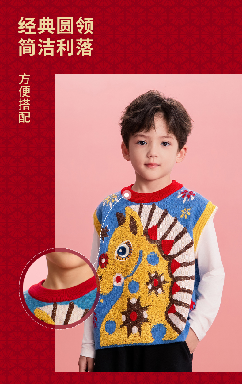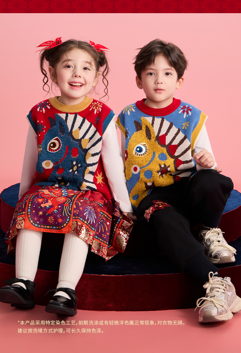 年衣童装儿童针织马甲秋冬新款男女童新中式盛世乐马针织马甲