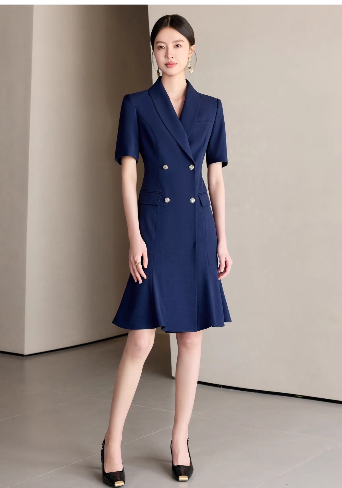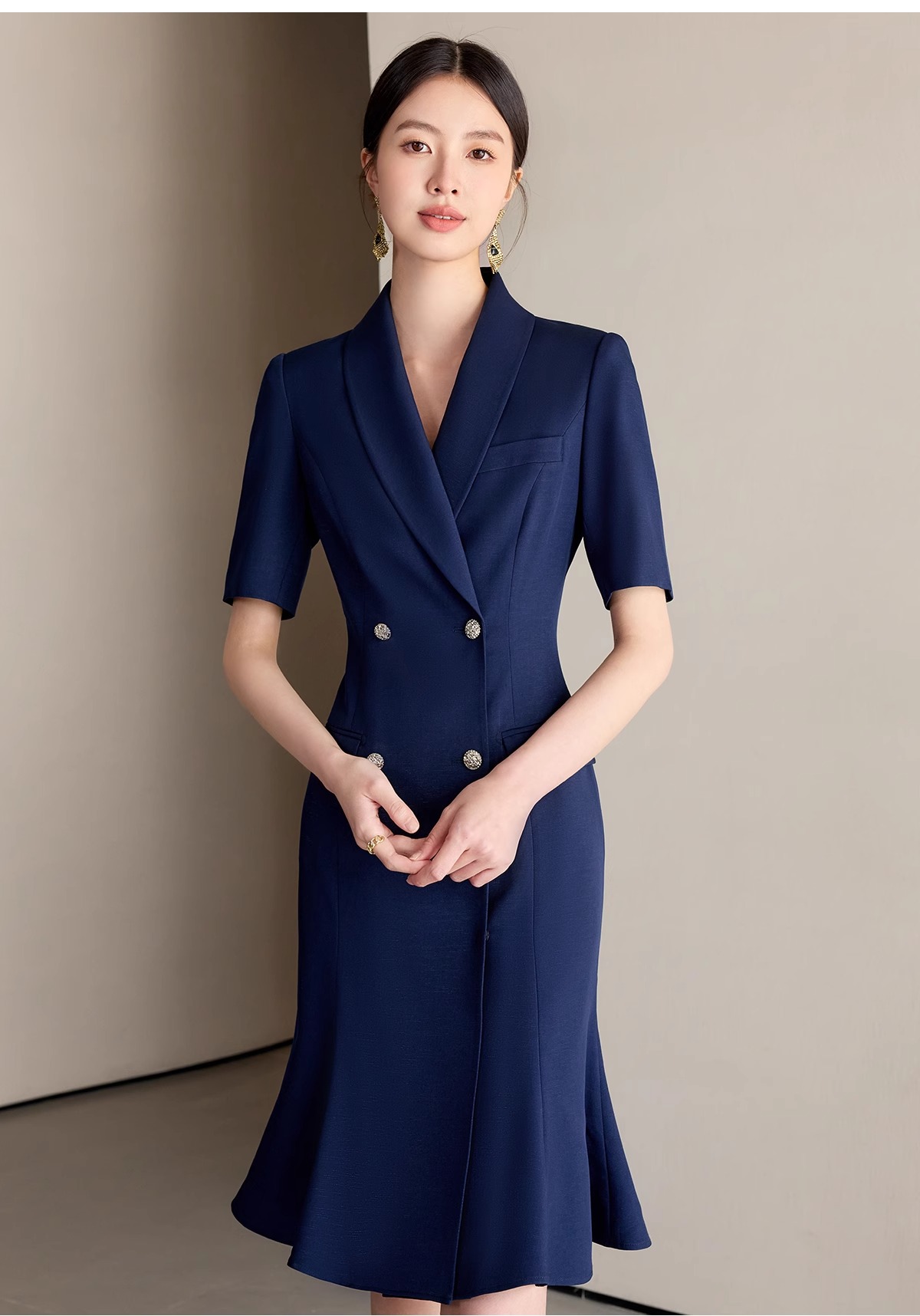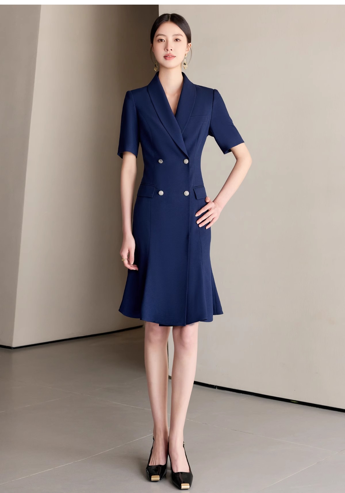 IWY/藏青色职业西装连衣裙女夏季气质修身鱼尾裙主持人演讲比赛正装25Q771