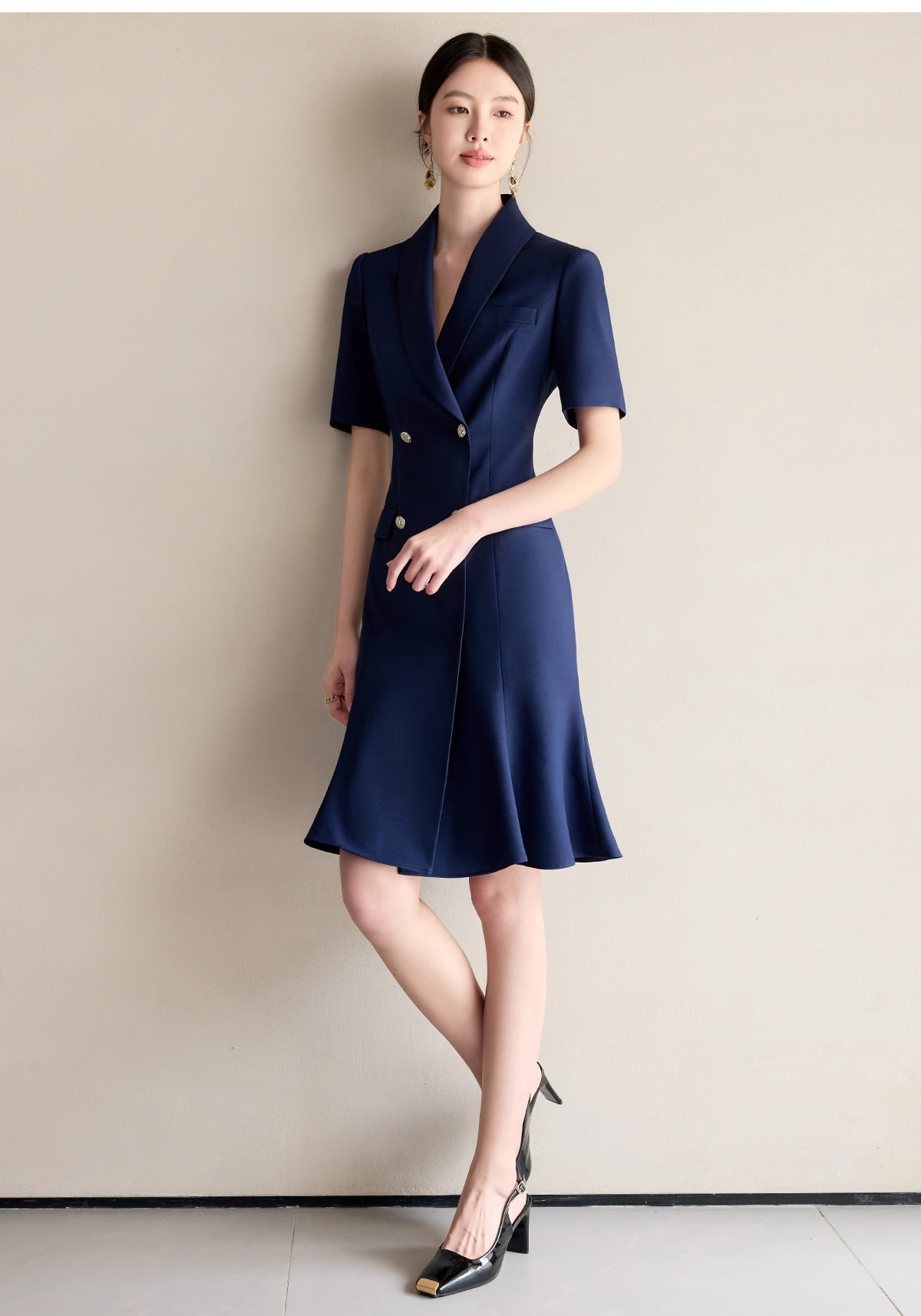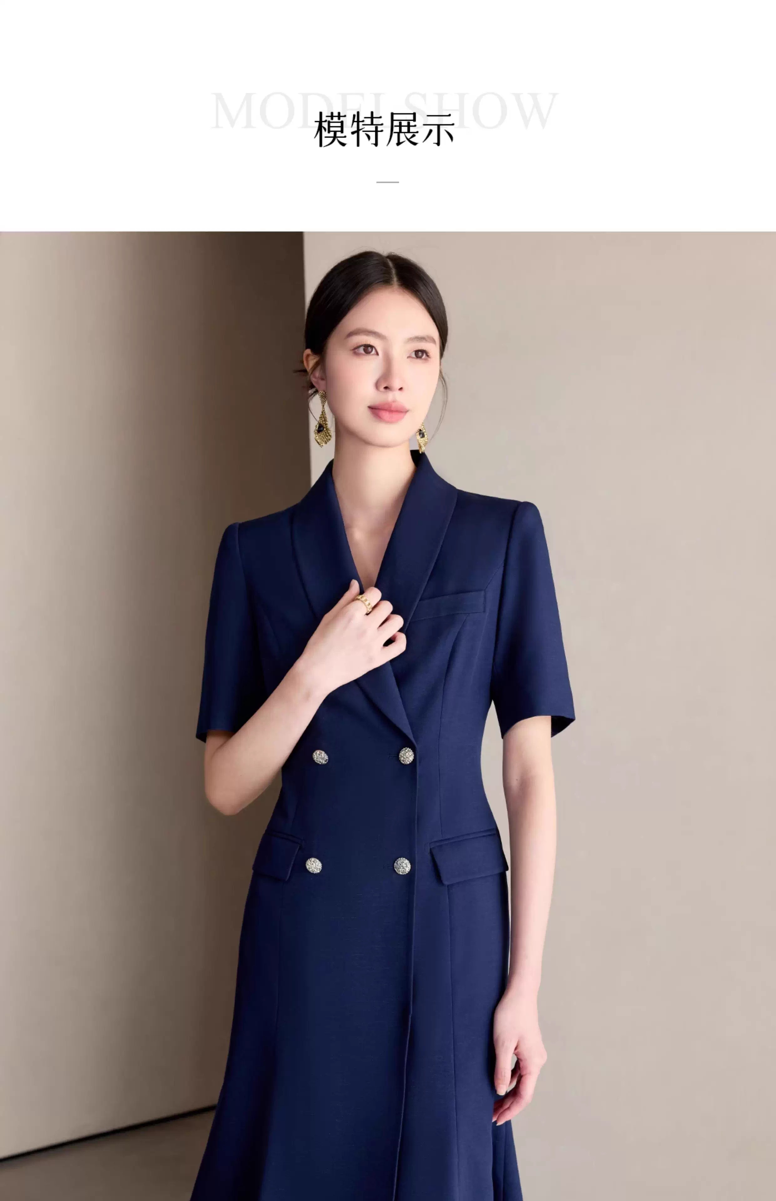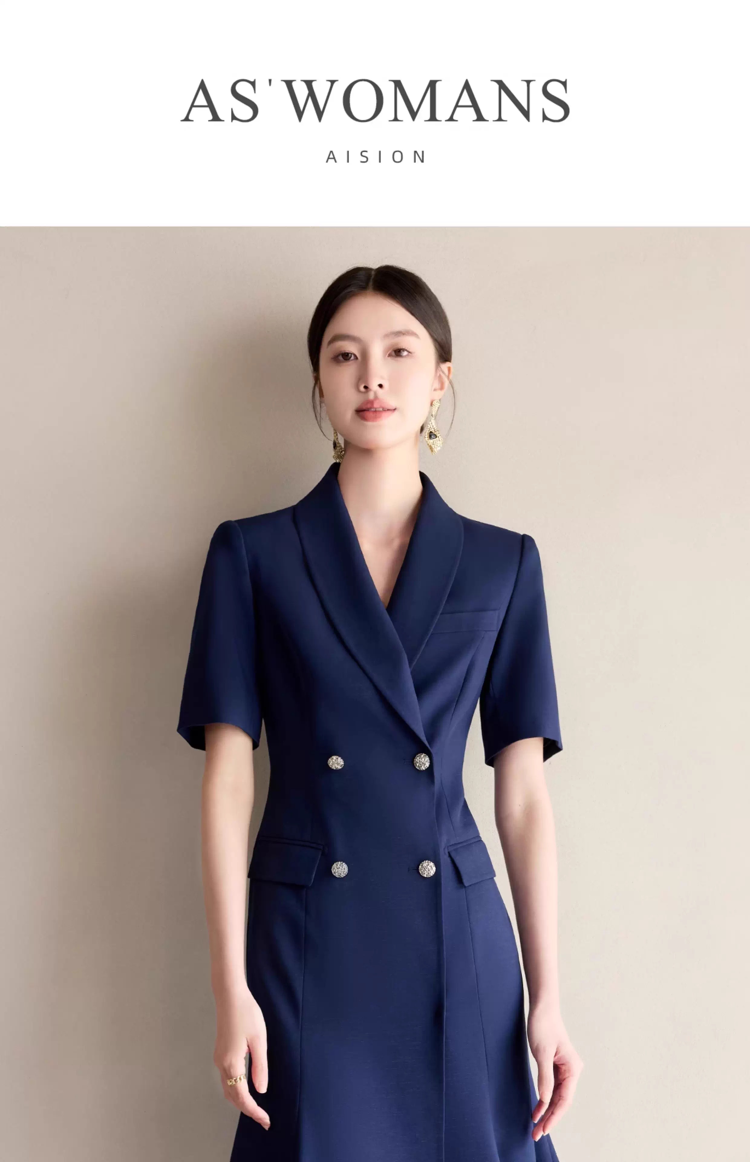IWY/藏青色职业西装连衣裙女夏季气质修身鱼尾裙主持人演讲比赛正装25Q771
