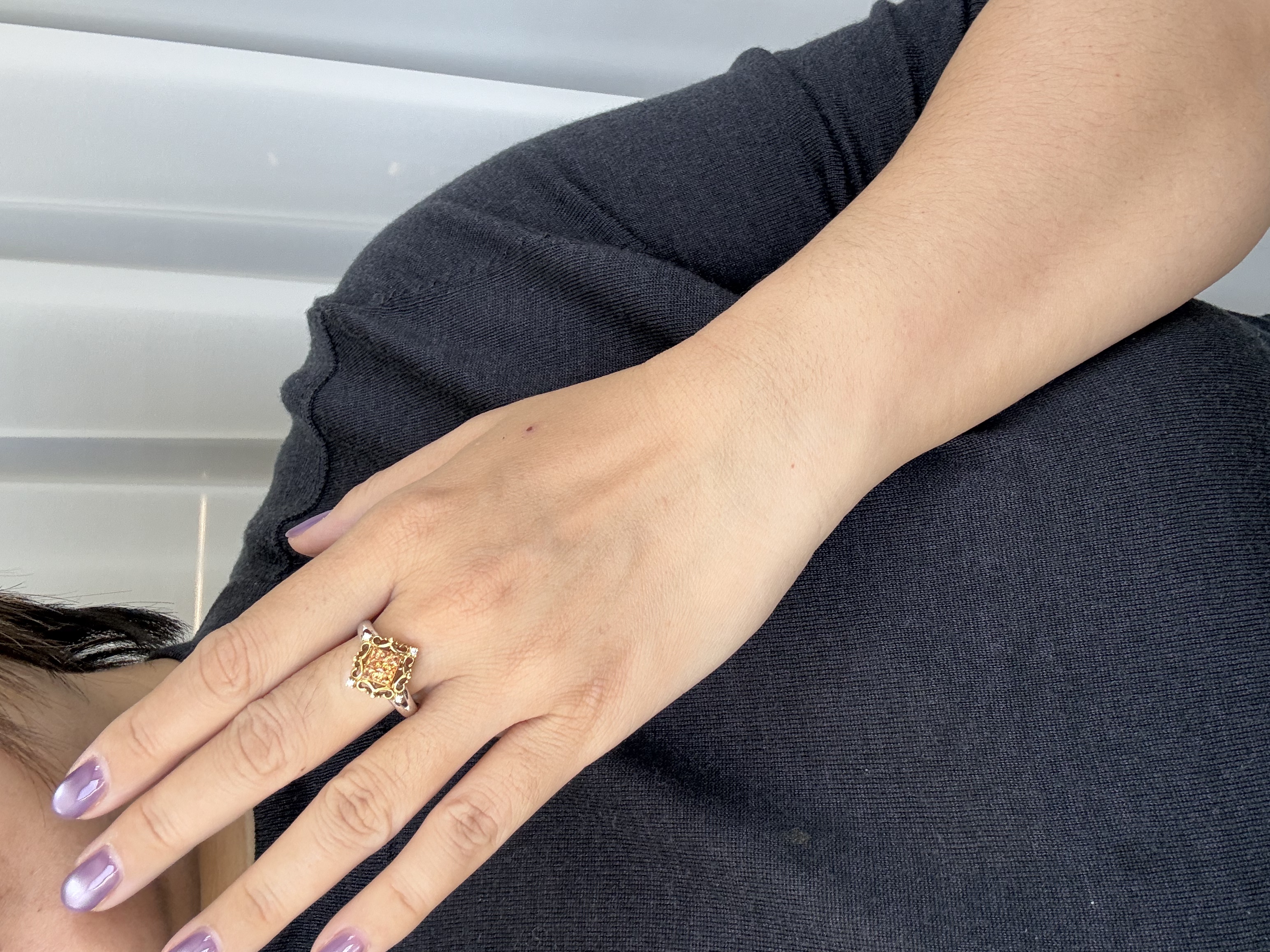 【日本溯源之旅】18K金黄蓝宝设计款戒指 复古蕾丝造型 黄蓝宝1.2ct 精湛无边镶工艺 5.3g. 戒圈19-21