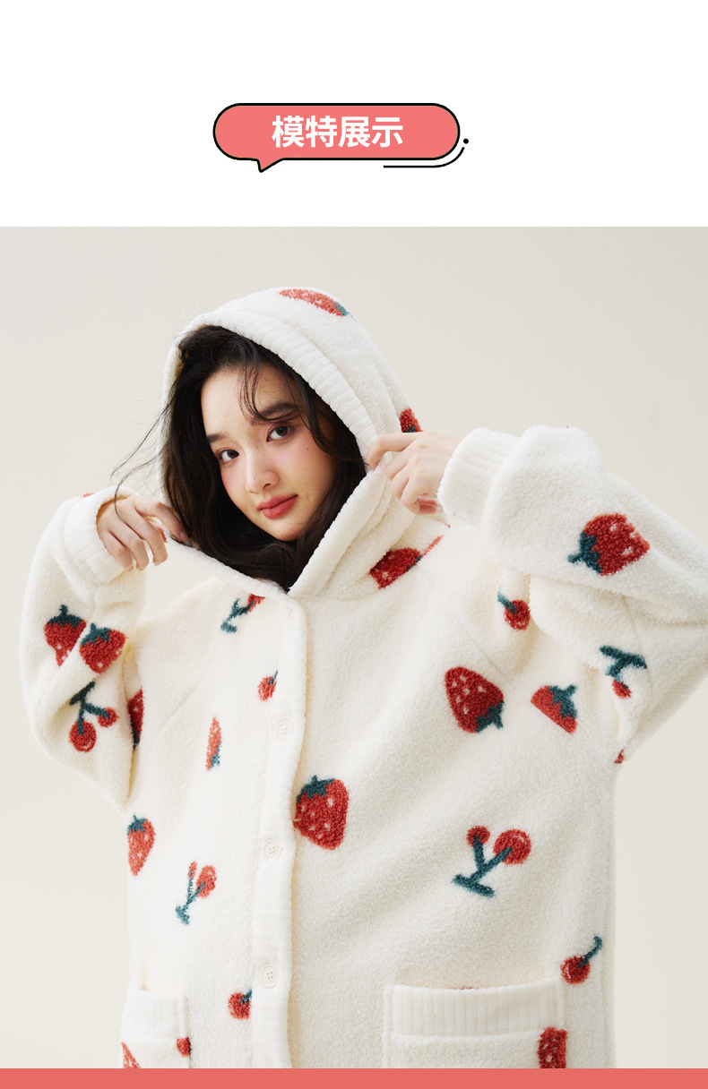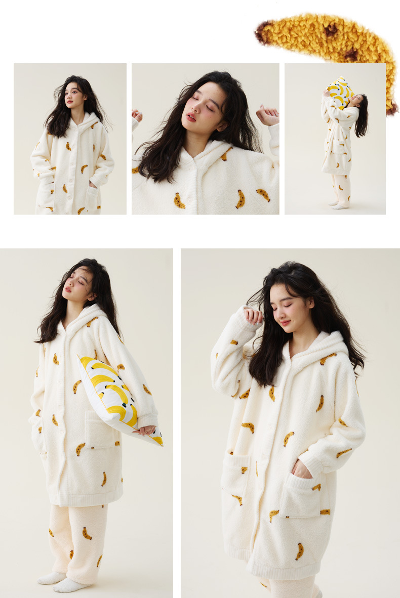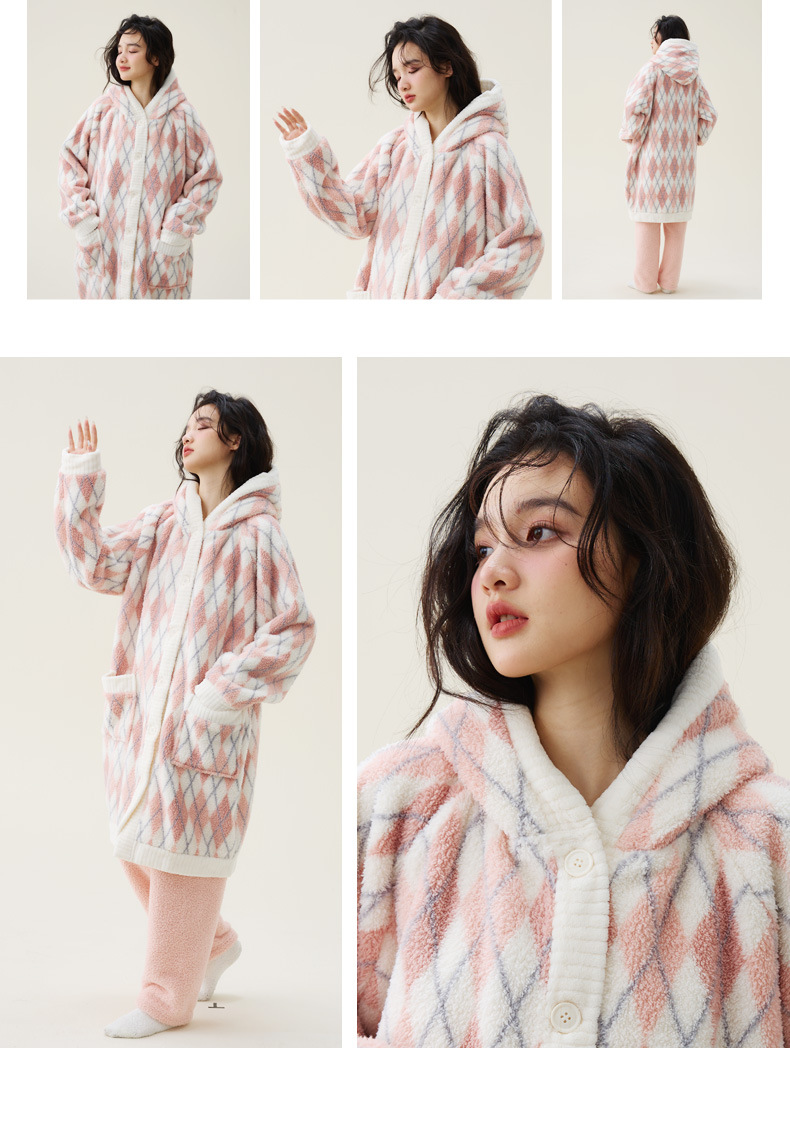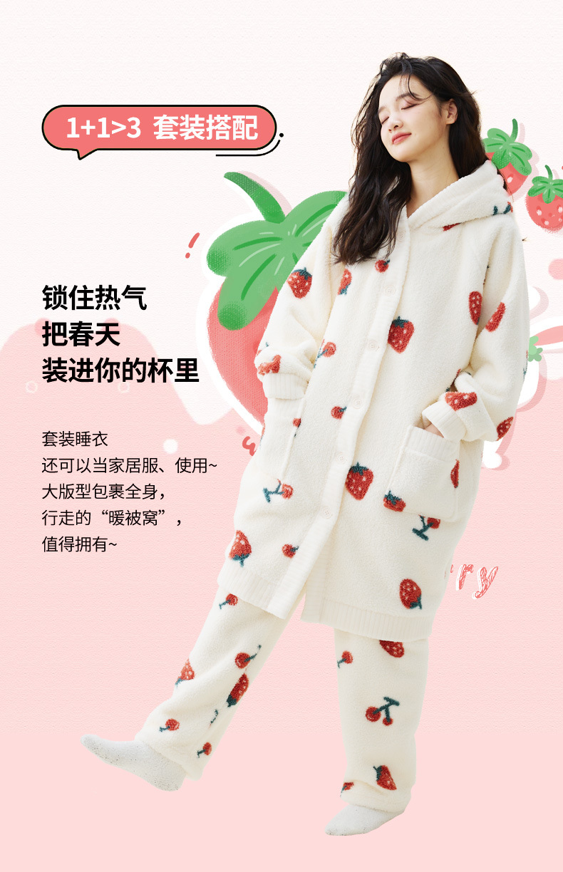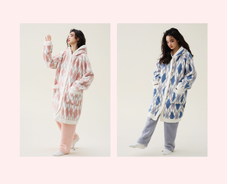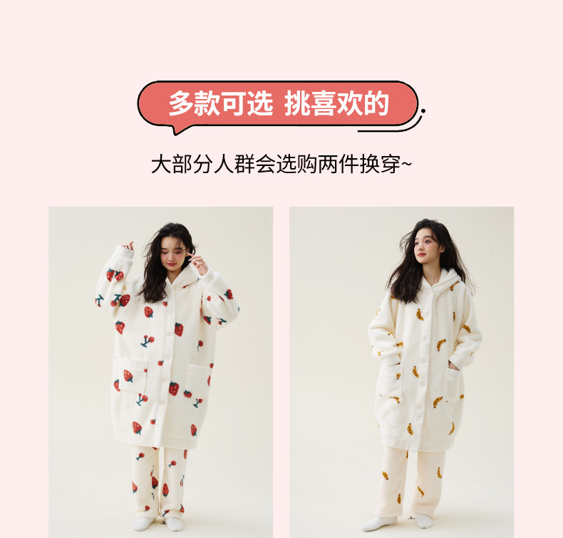 秋冬季爆款【连帽印花长款套装】珊瑚绒加厚睡衣套装 家居服套装可外穿 卡通睡袍