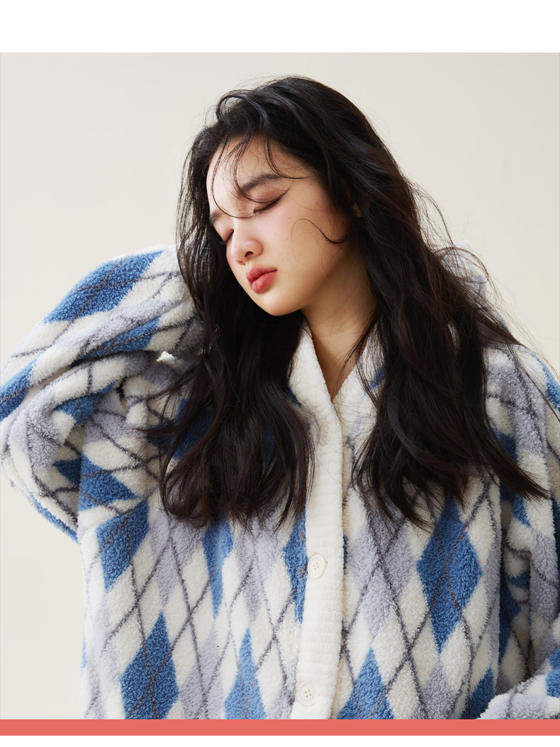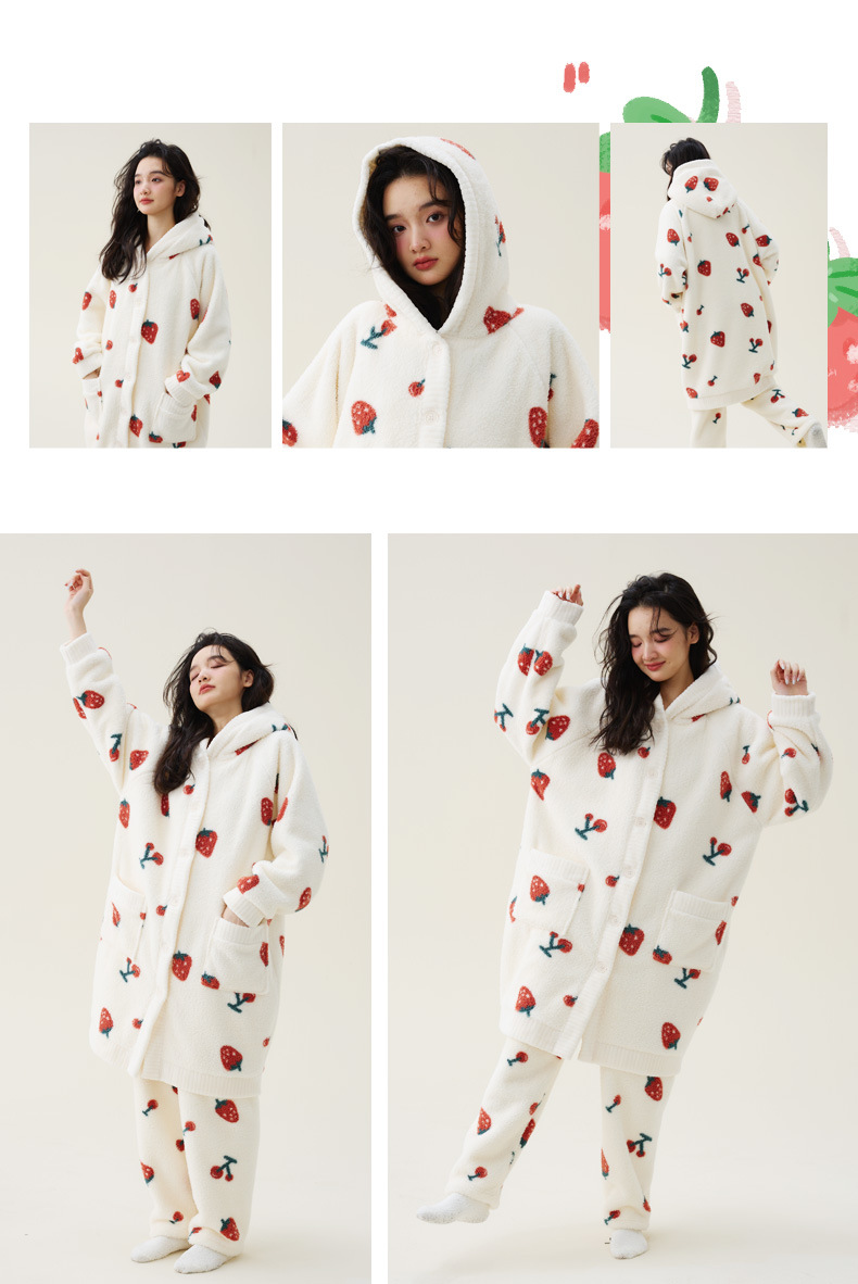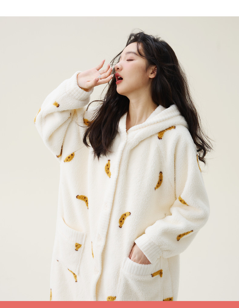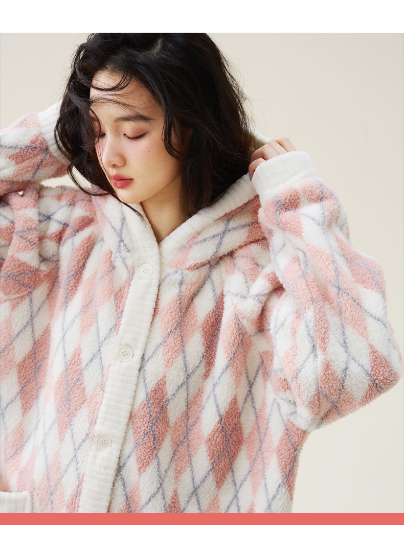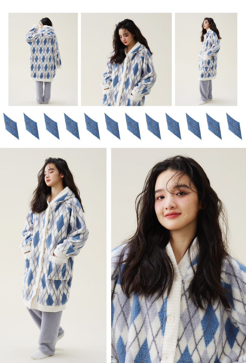 秋冬季爆款【连帽印花长款套装】珊瑚绒加厚睡衣套装 家居服套装可外穿 卡通睡袍