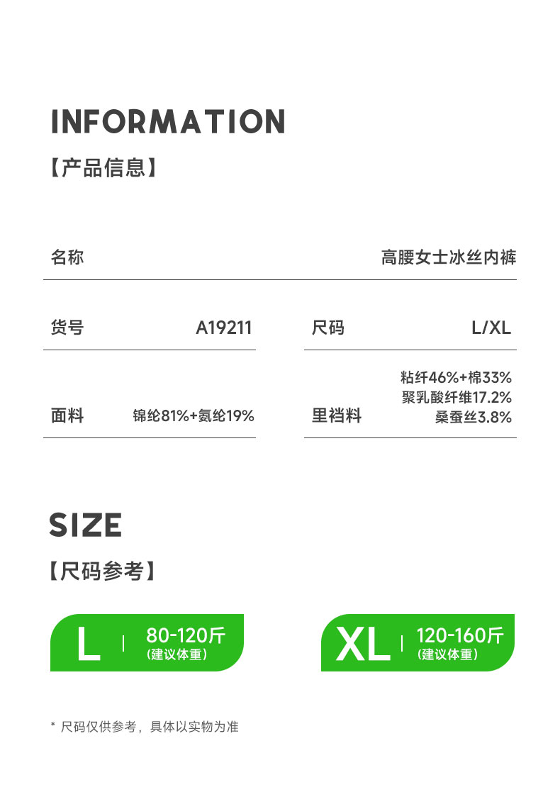 【舒适裸感】高腰凉感冰丝面膜裤5条装A19211