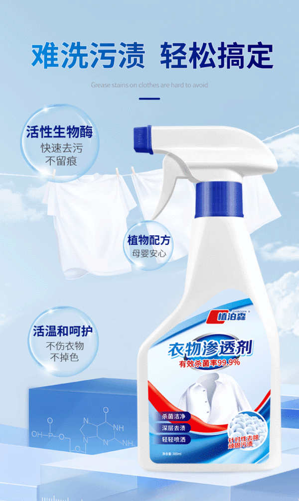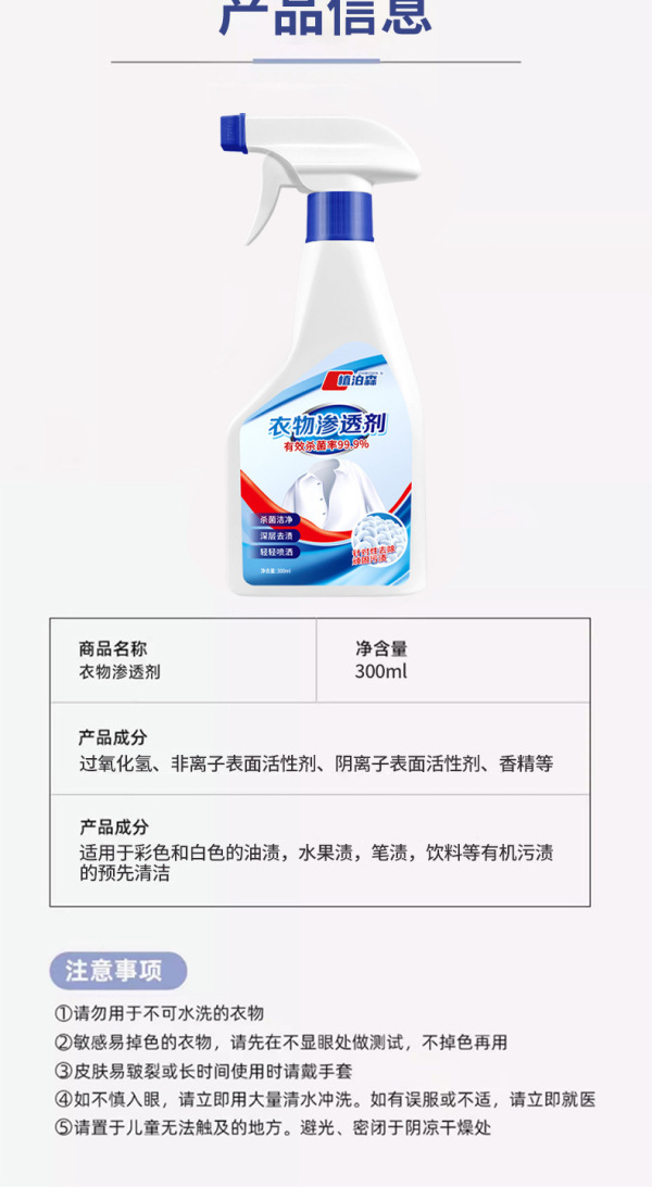 佐禧佑福衣物渗透剂家用去油渍去黄白衣去霉清洗剂不留痕迹强力去渍衣领净