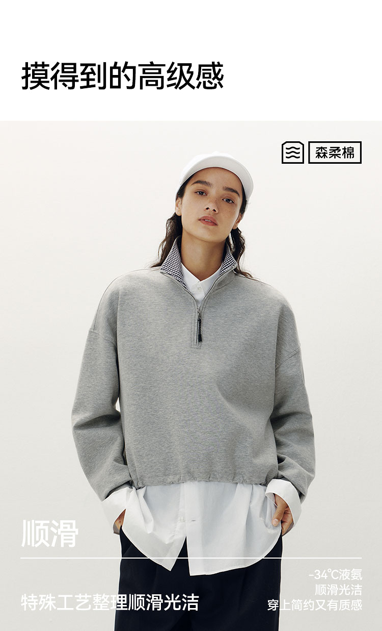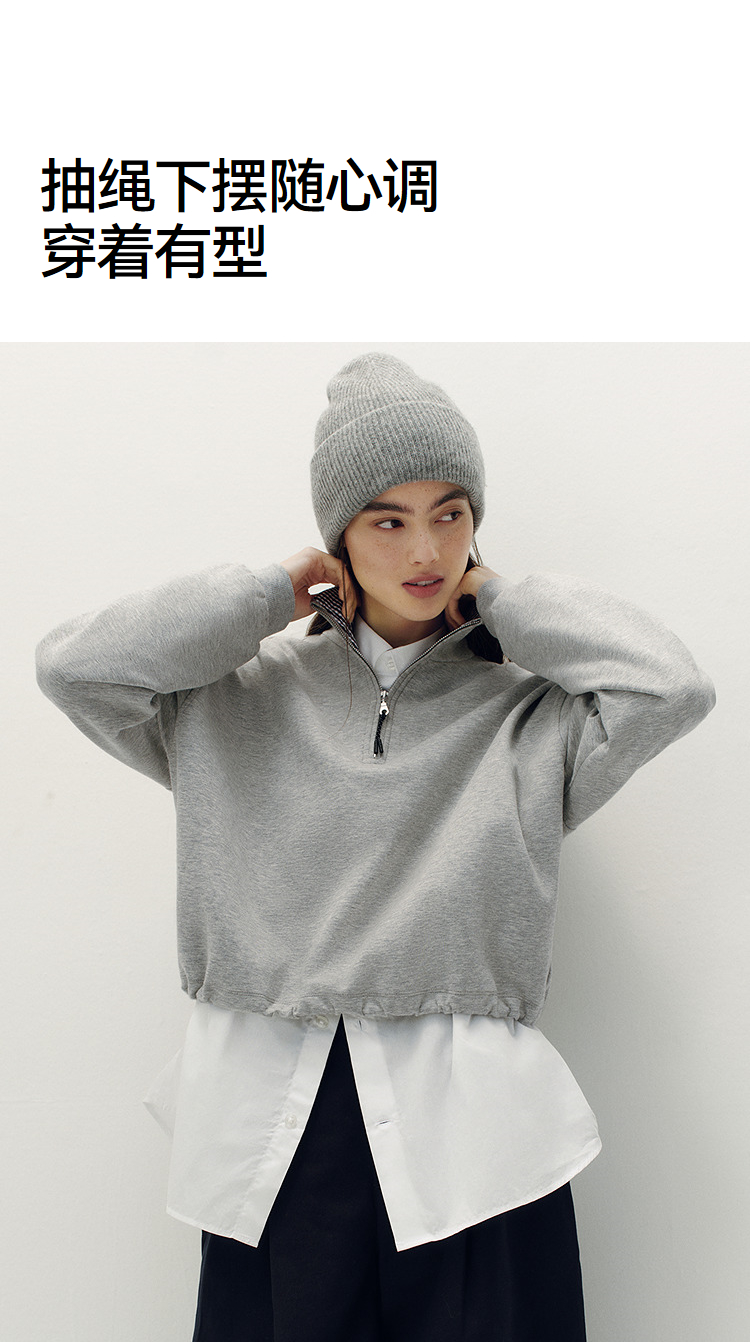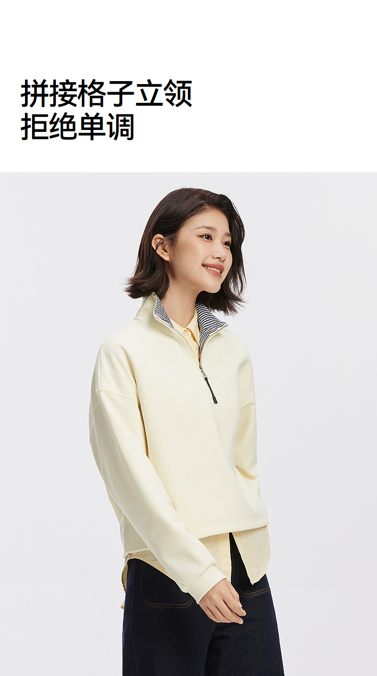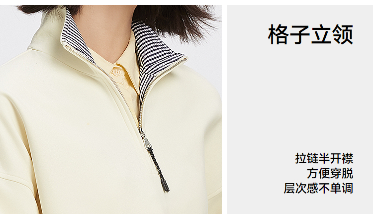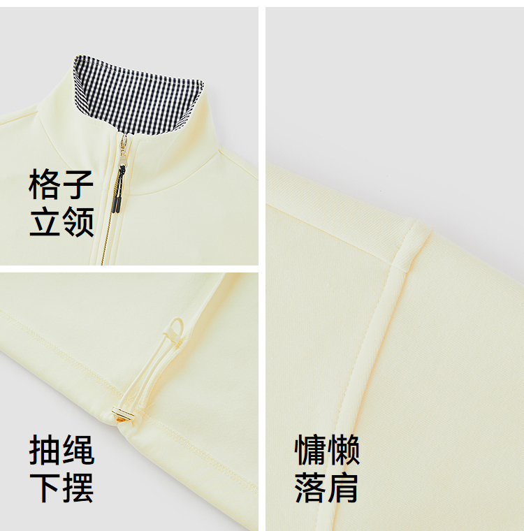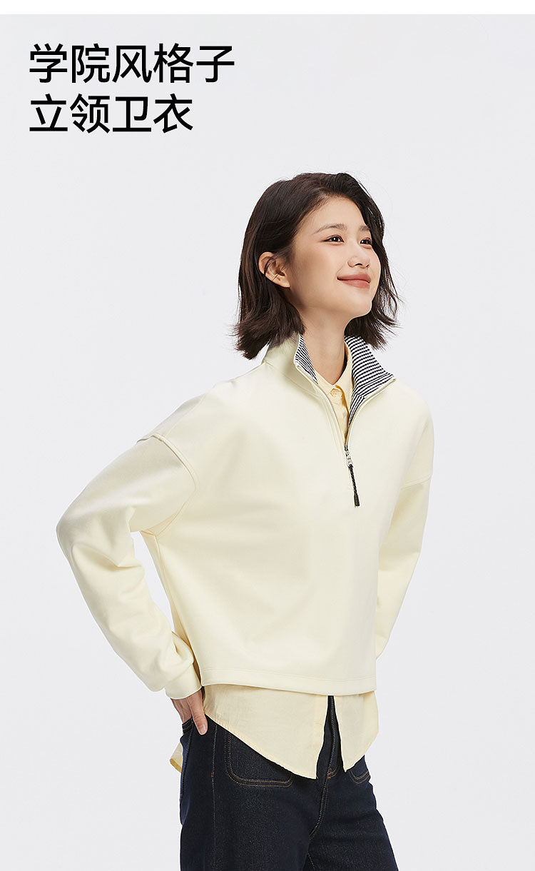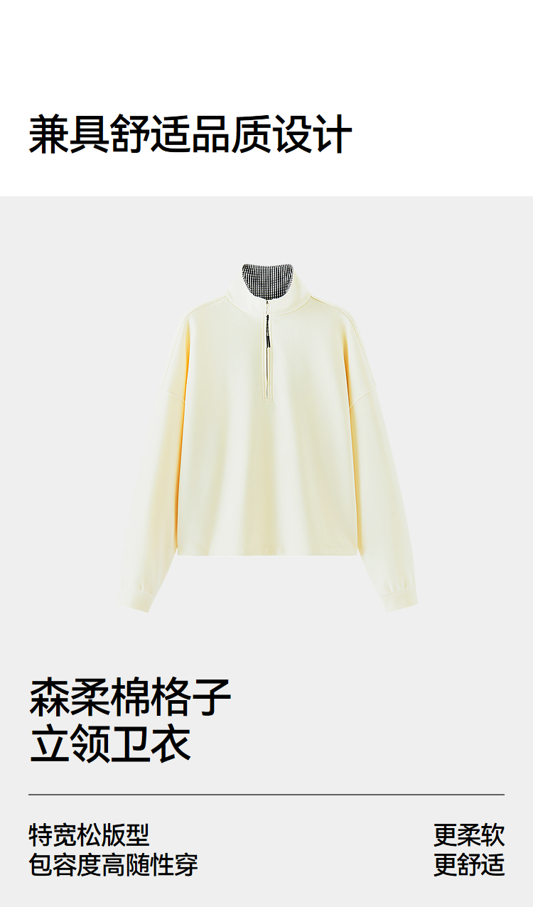 森柔棉|商场同款森马卫衣女oversize格子立领2025秋新款抽绳上衣
