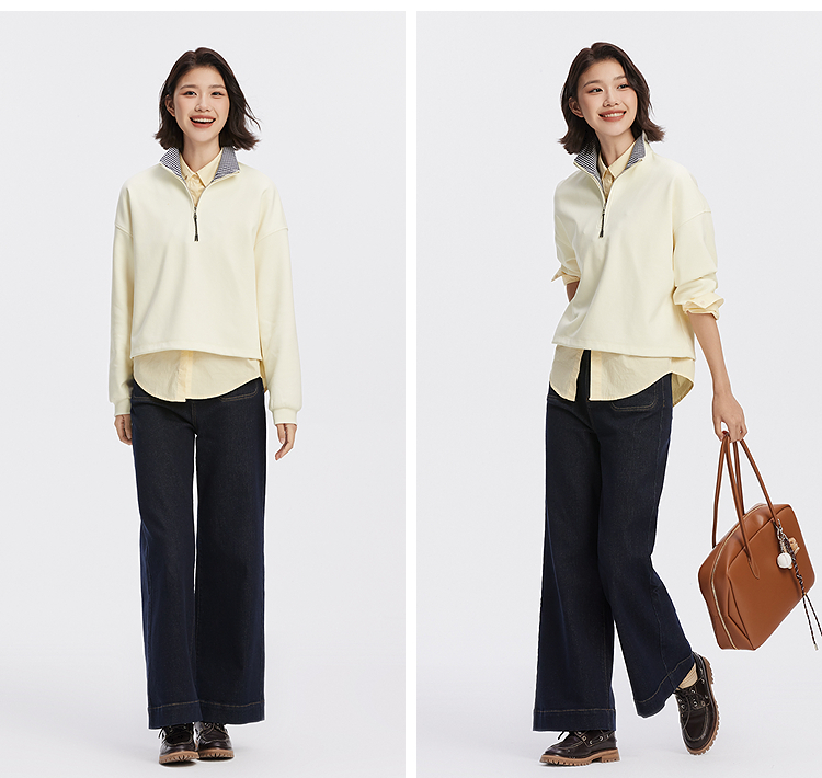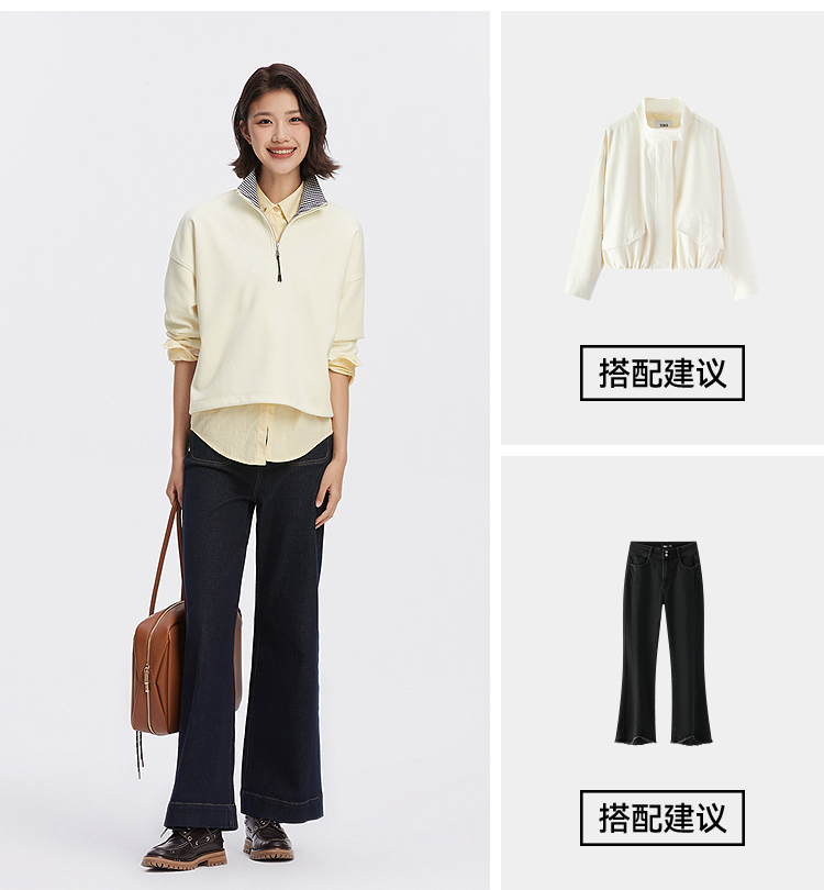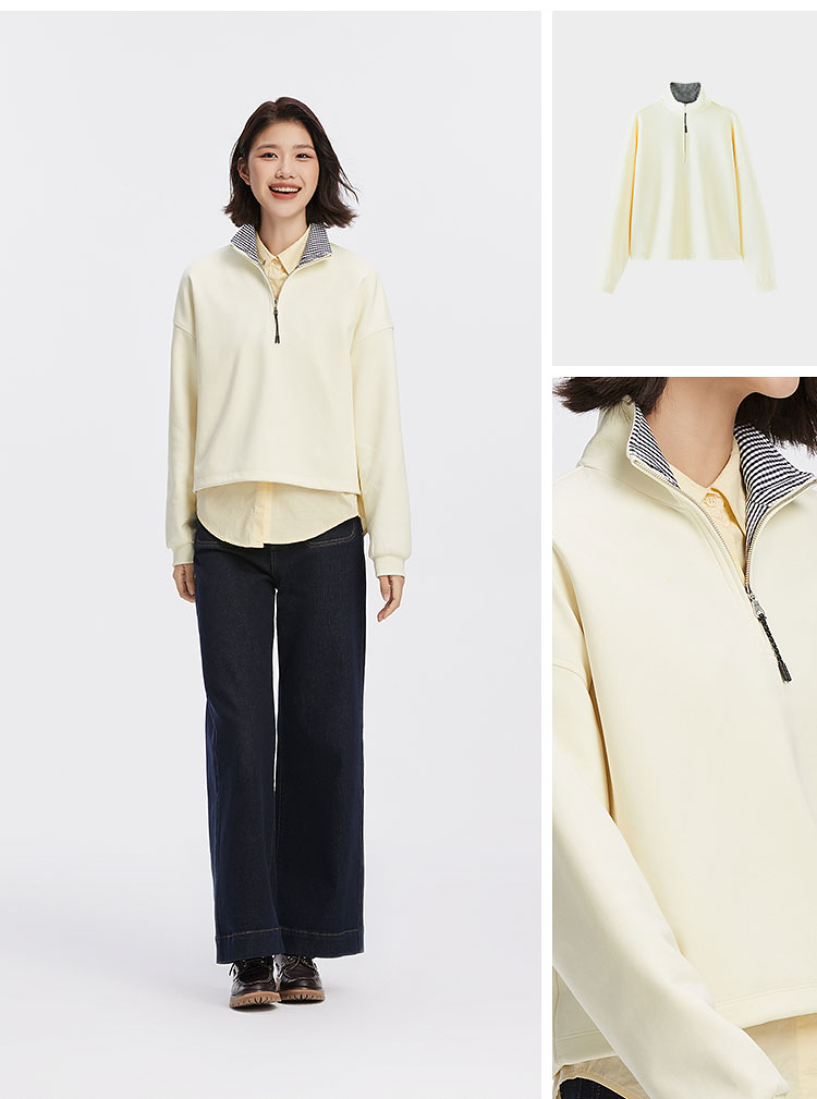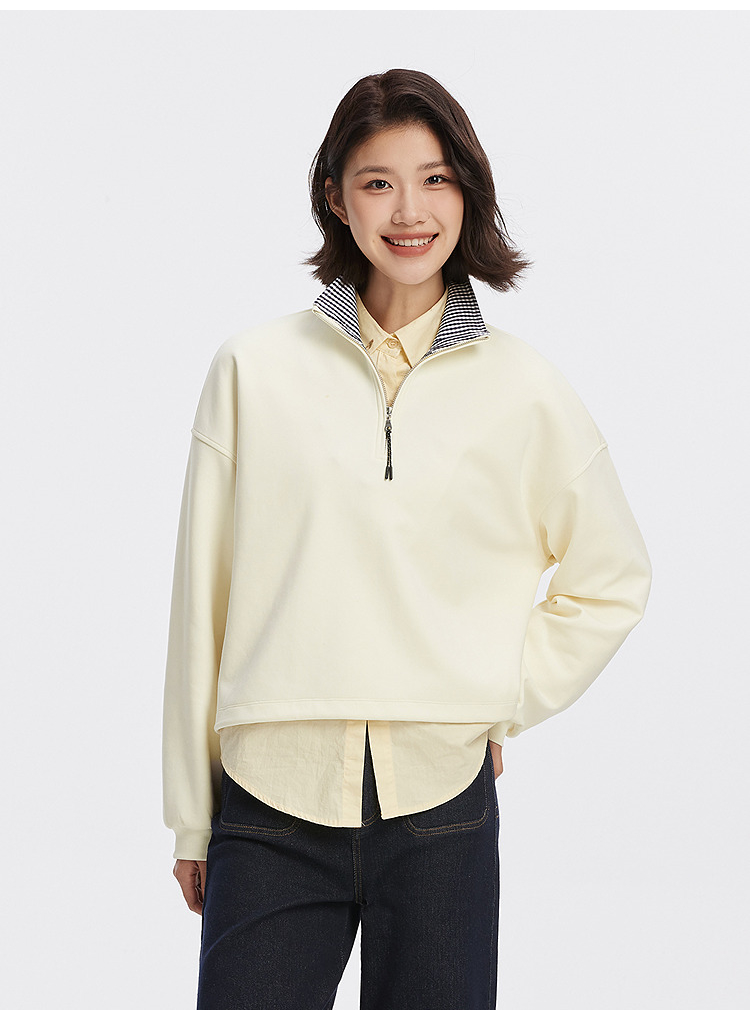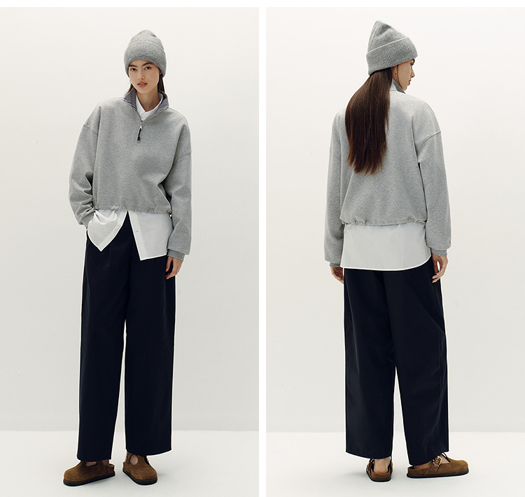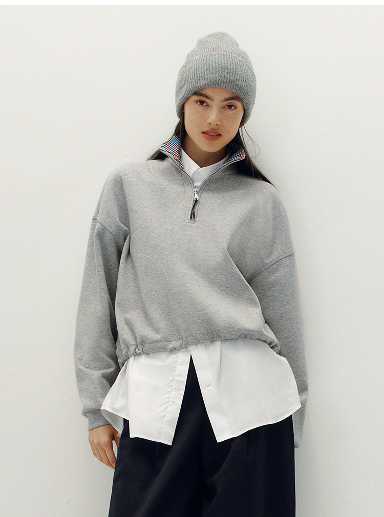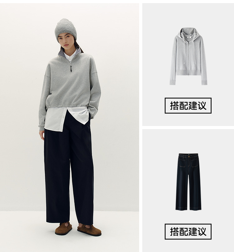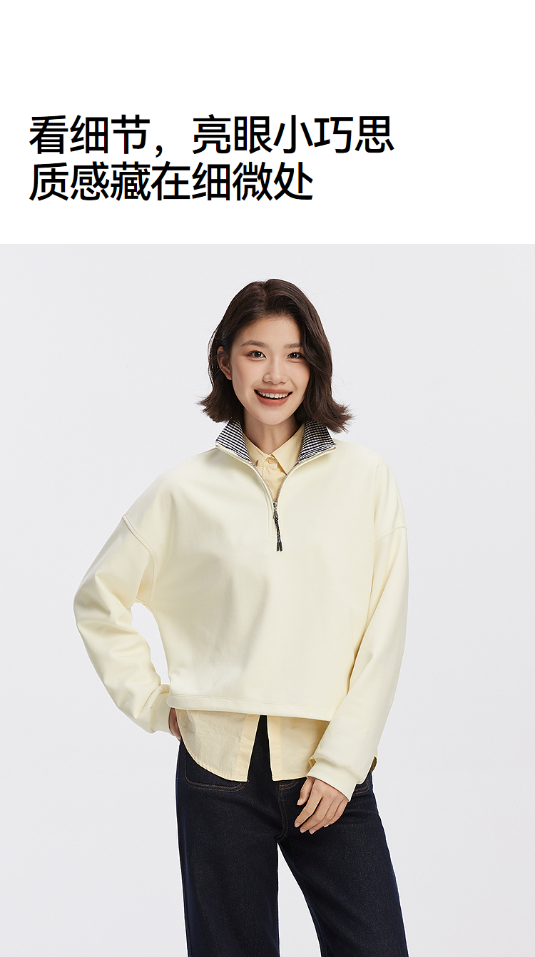 森柔棉|商场同款森马卫衣女oversize格子立领2025秋新款抽绳上衣