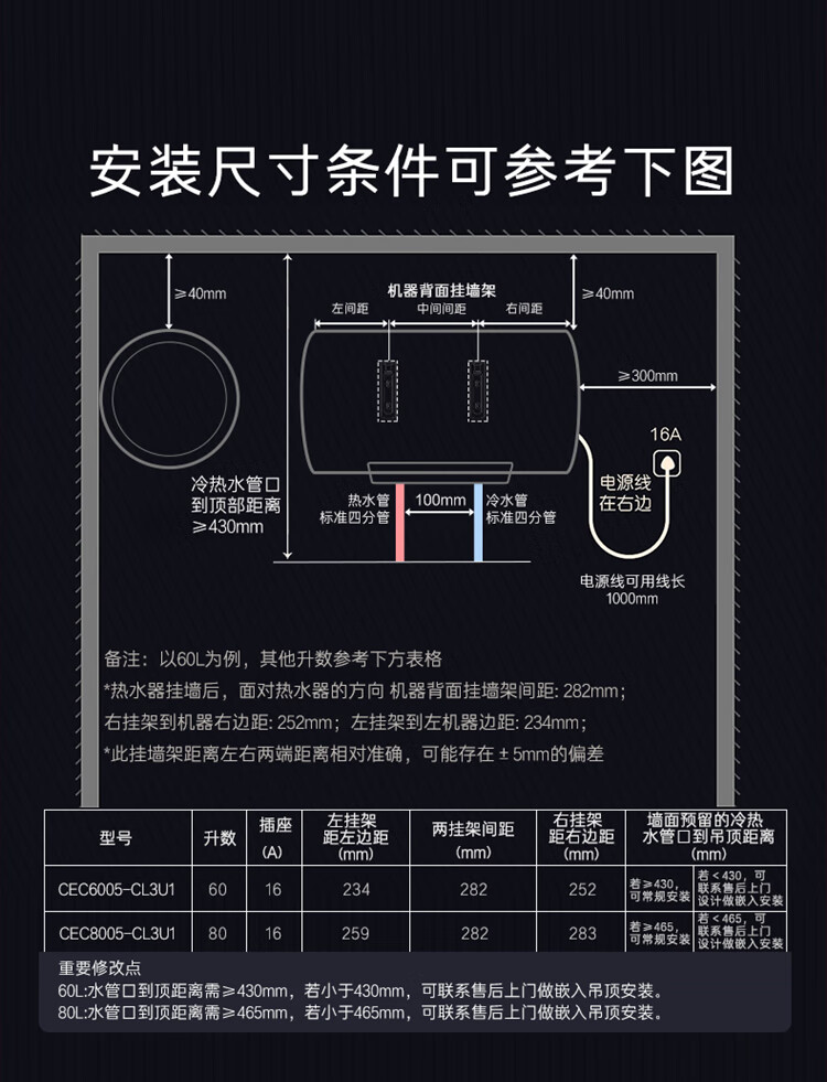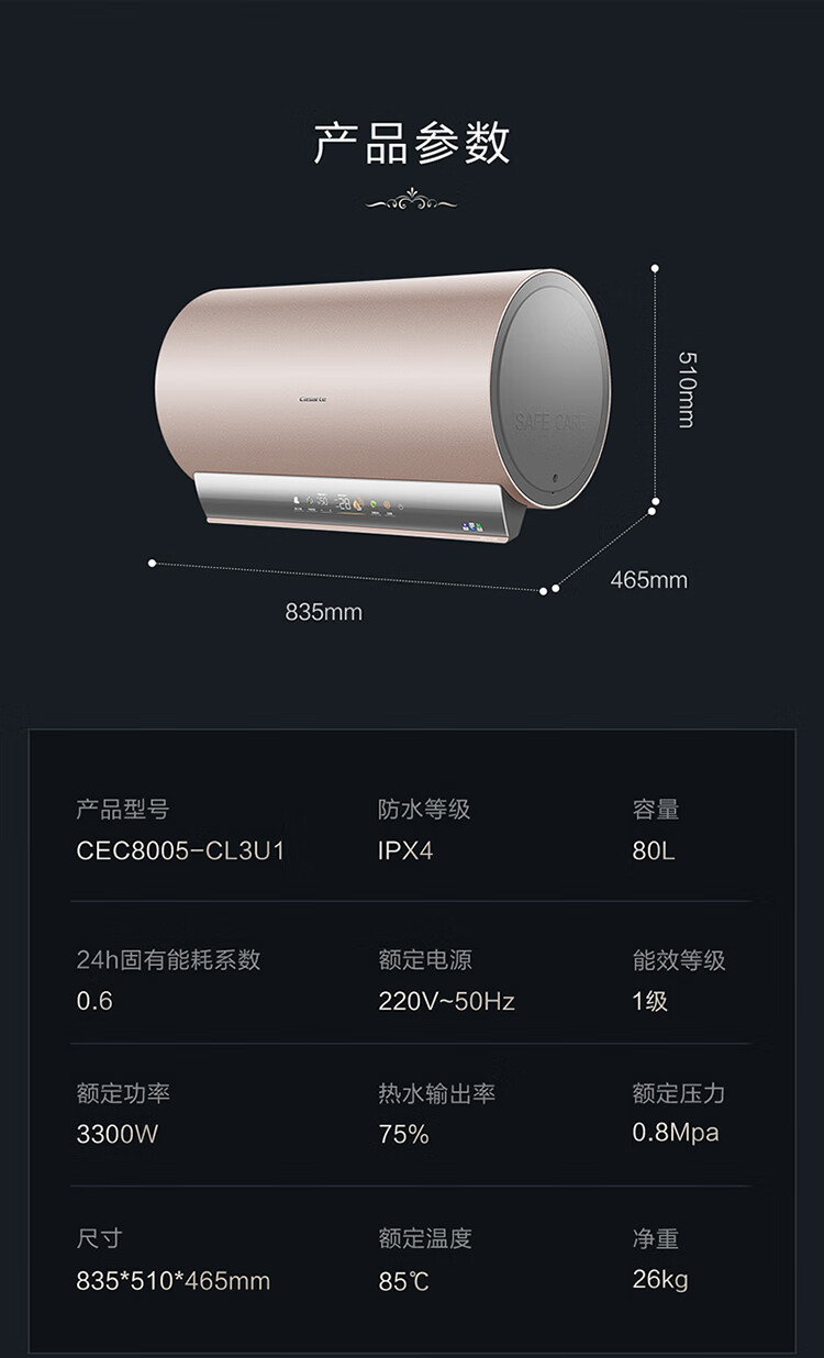 卡萨帝(Casarte)【CL3】80升电热水器富锶矿泉 3.3KW变频速热9倍增容大水量 CEC8005-CL3U1国补换新