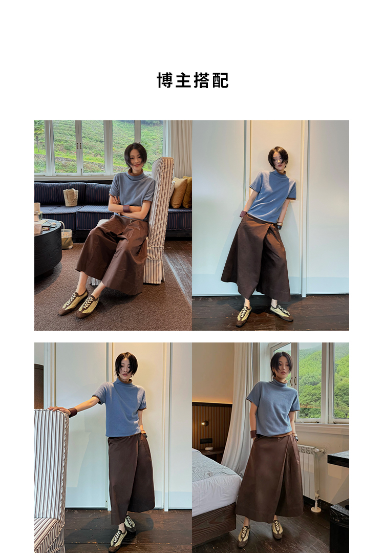 HIDEMI自然水洗亚麻轻薄宽松廓形T恤休闲四件套短袖长袖半裙长裤阿贝贝套装