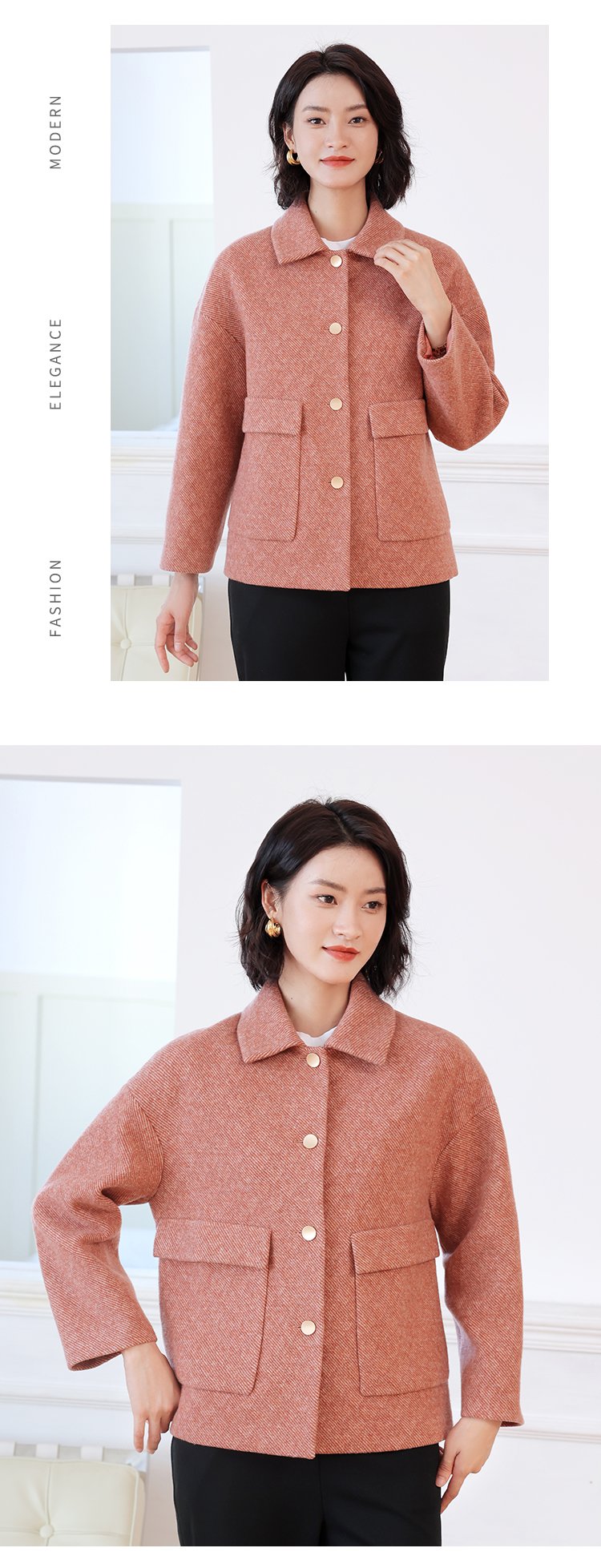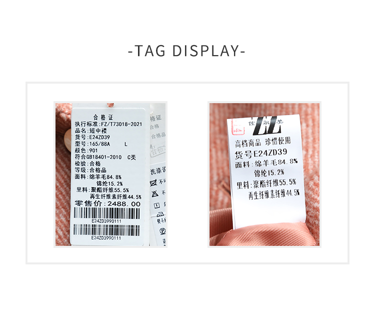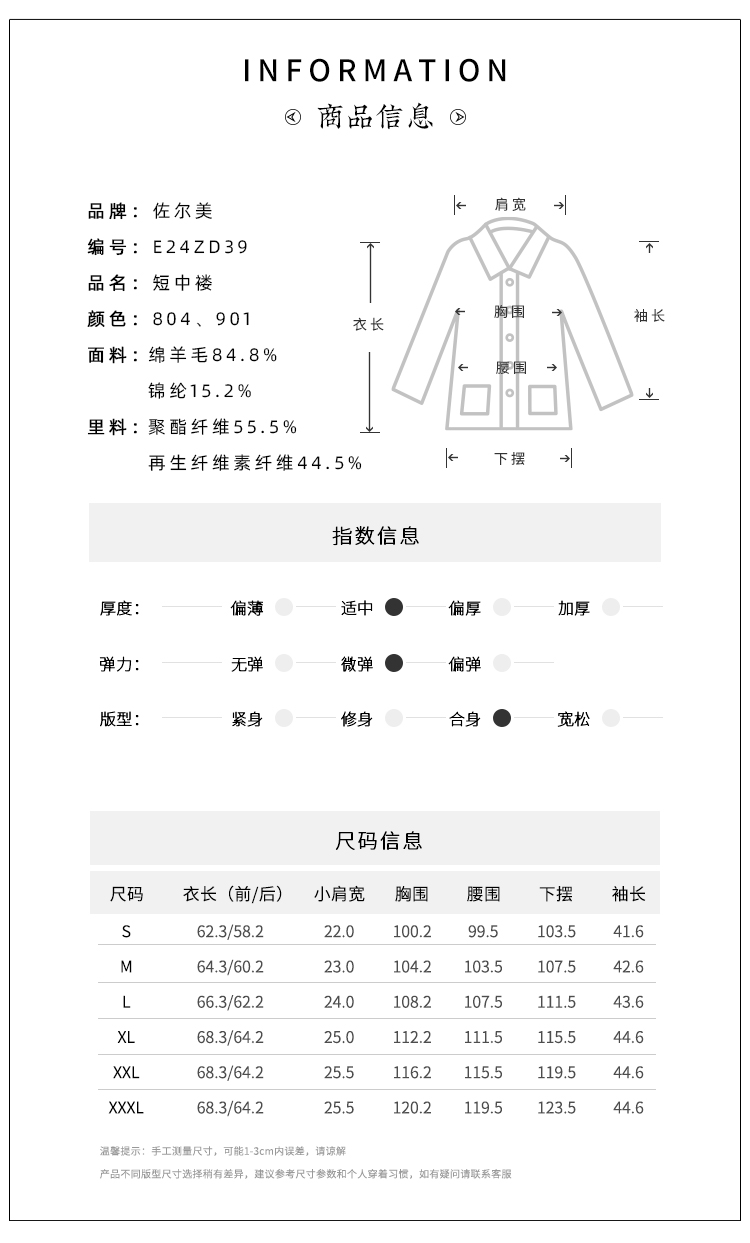 佐尔美秋冬新款 休闲时尚羊毛短款毛呢外套女E24ZD39