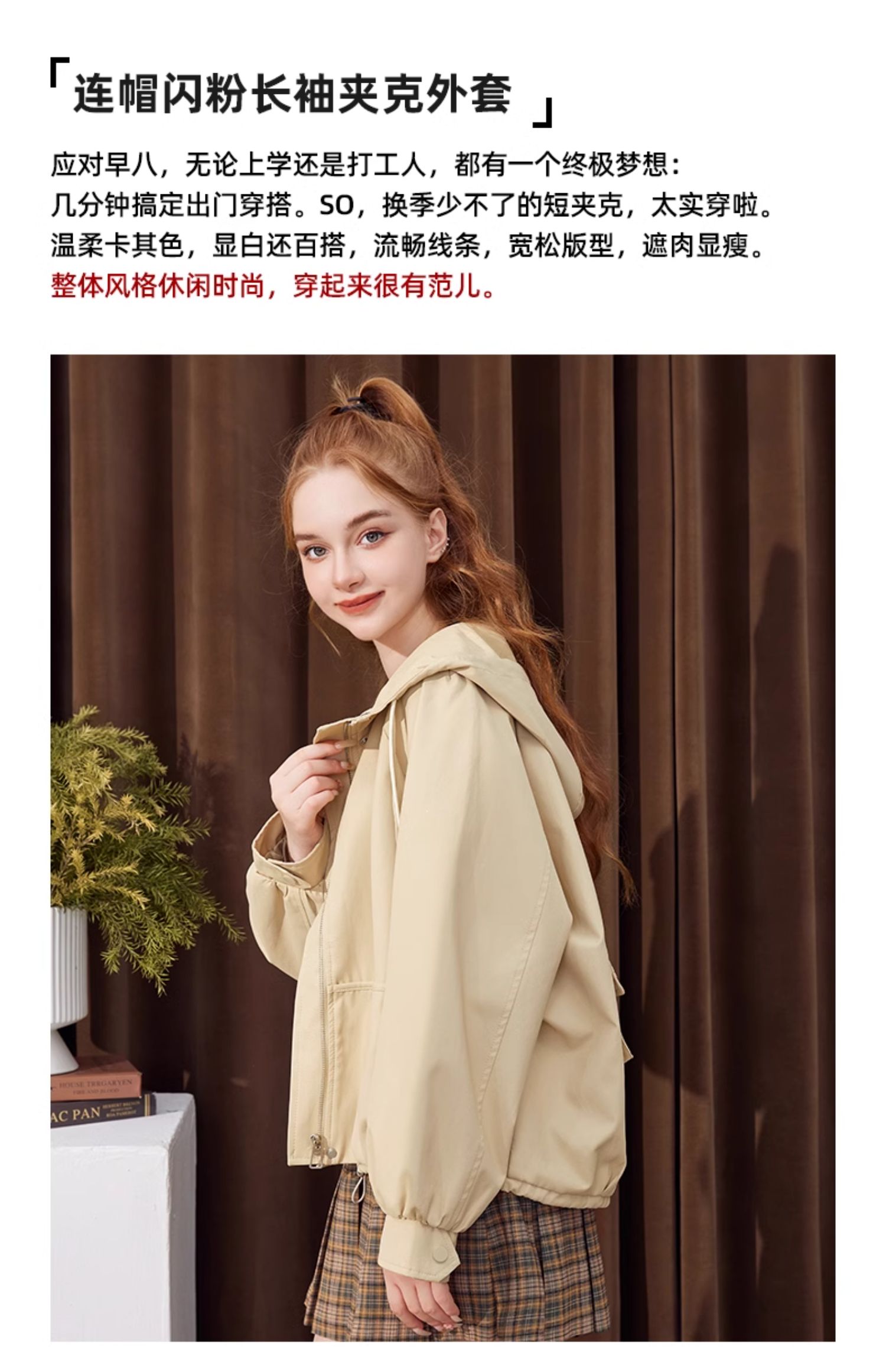 mc2连帽闪粉长袖夹克外套女2023秋季新款后背口袋设计感潮搭上衣