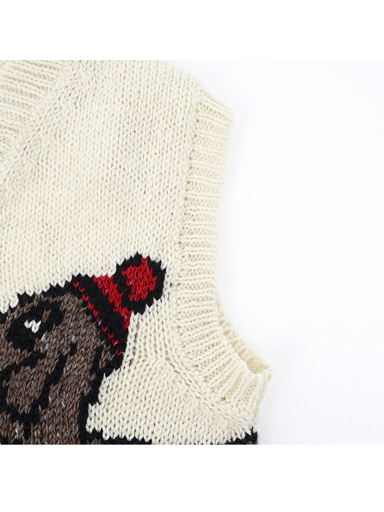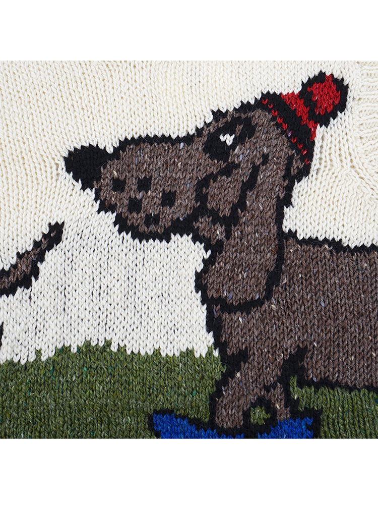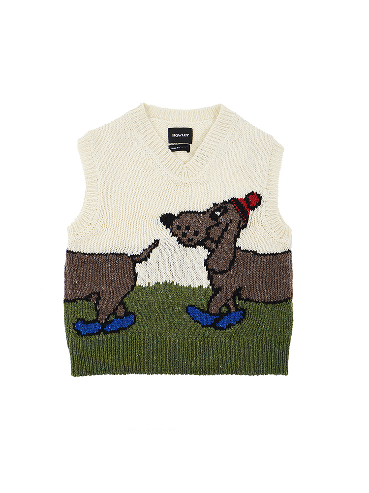 Howlin BUMPER LOVER 女装小狗刺绣羊毛马海毛马甲 V领毛衣