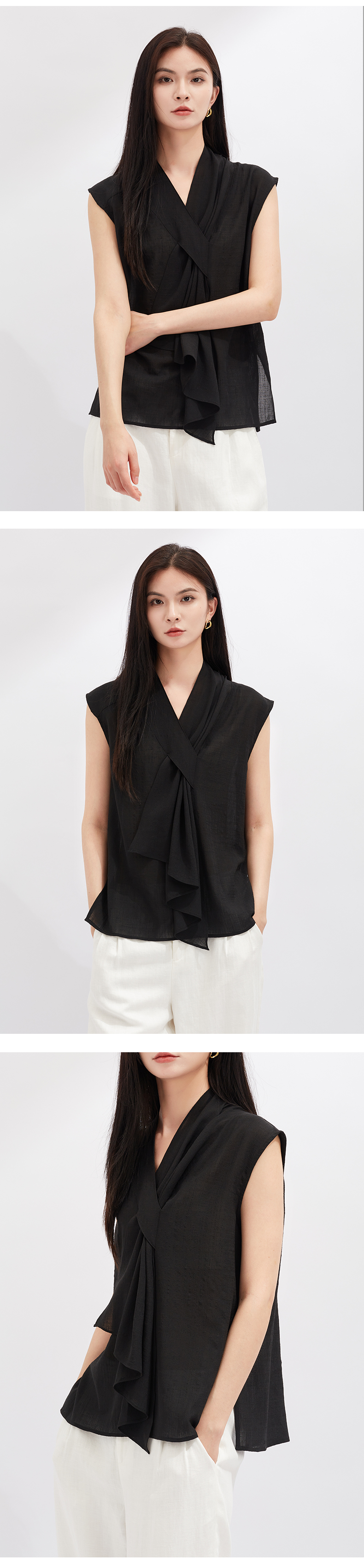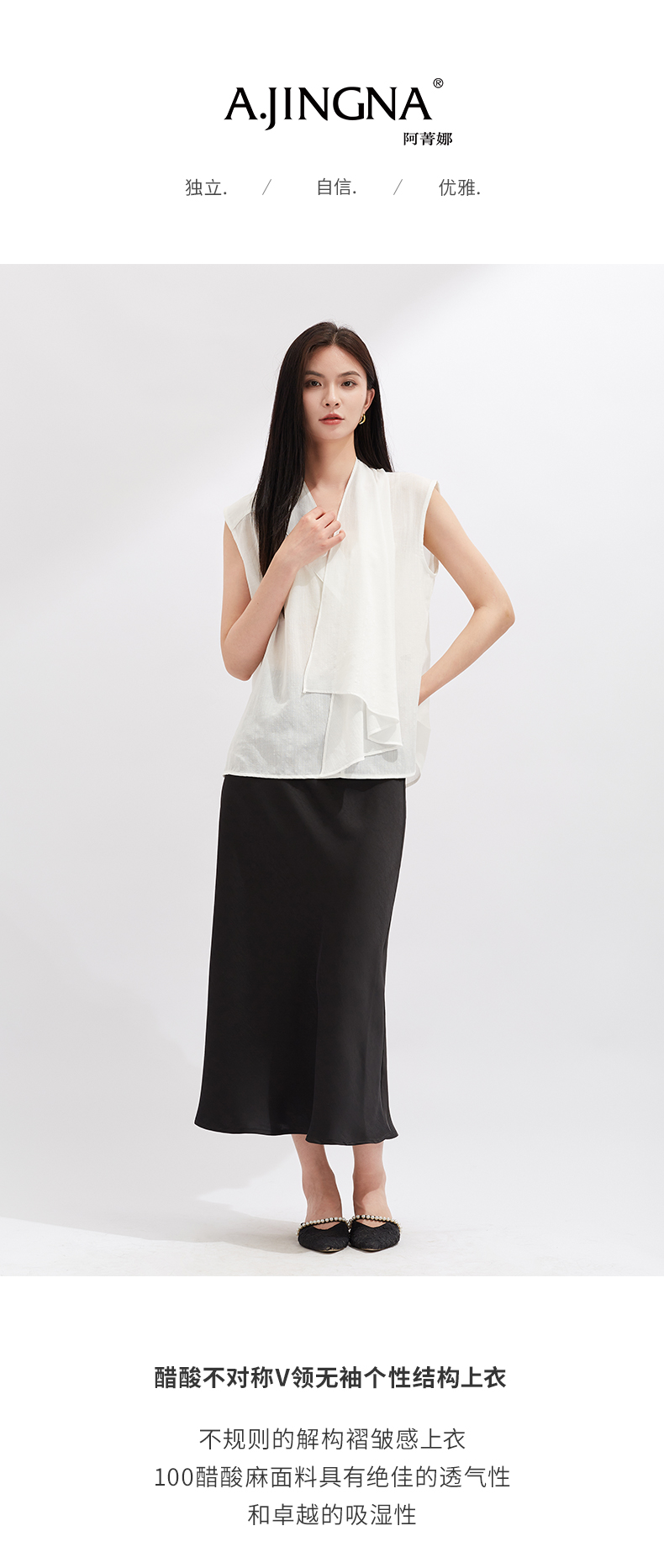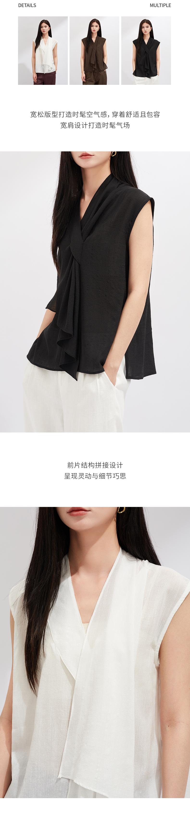【灵动透气】阿菁娜醋酸不对称V领无袖个性结构上衣F30X202021