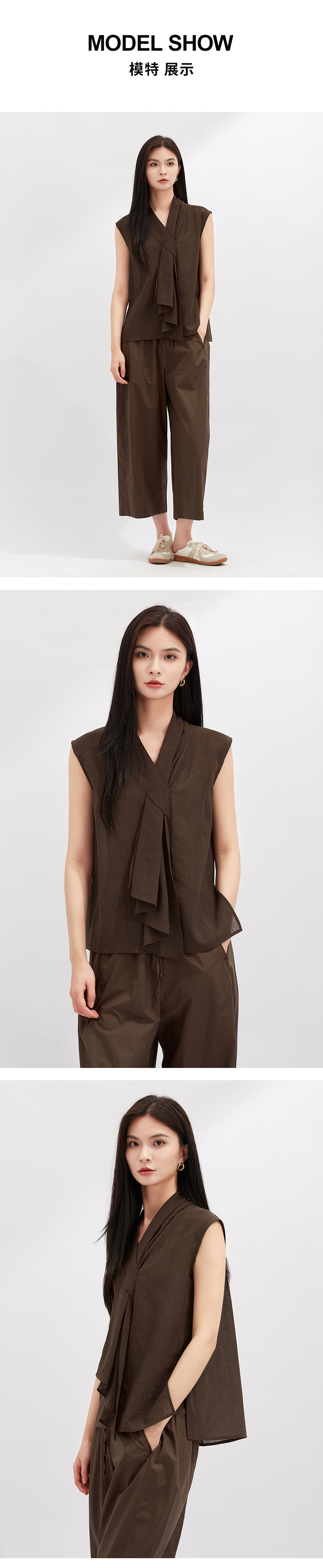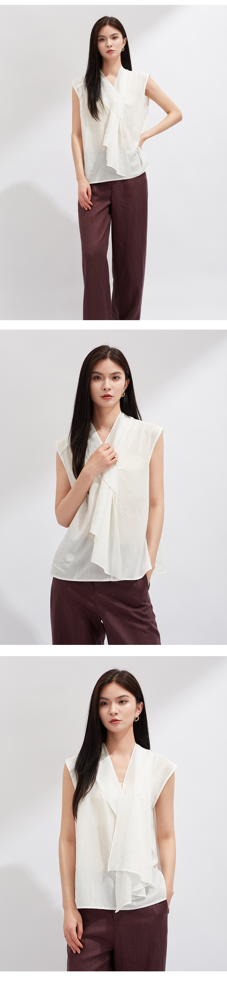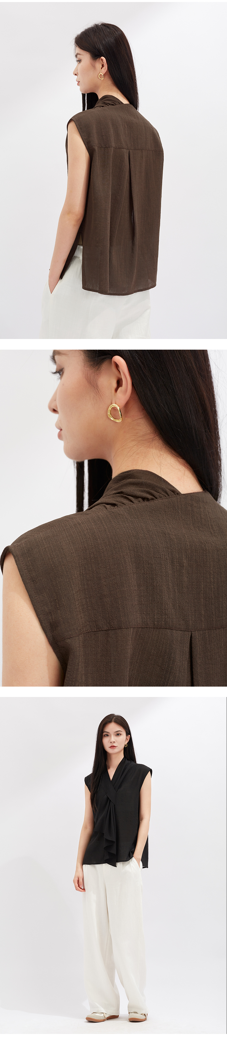 【灵动透气】阿菁娜醋酸不对称V领无袖个性结构上衣F30X202021