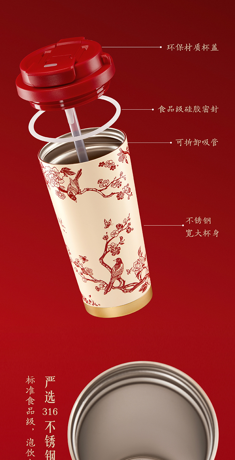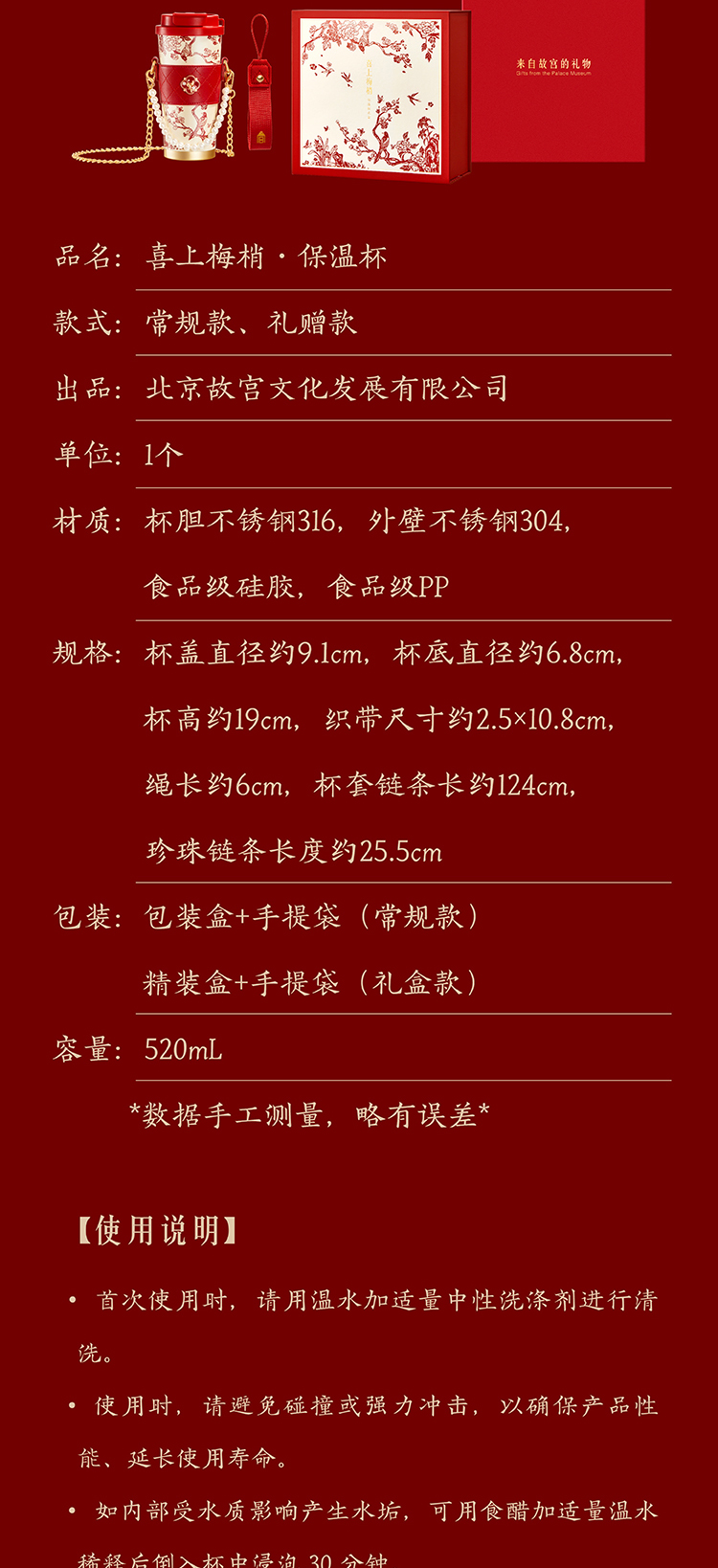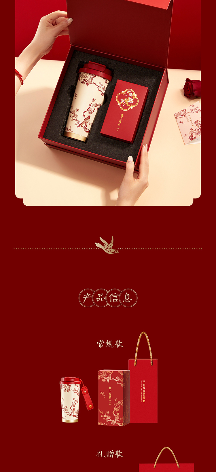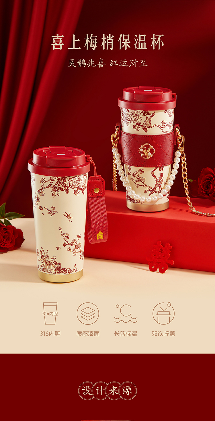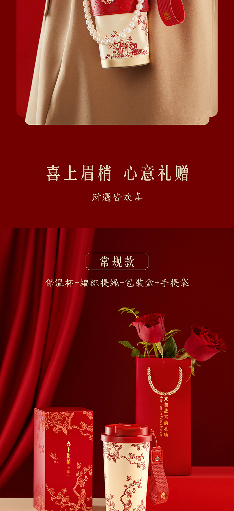 【故宫杯子】喜上梅梢保温杯大容量文创新婚结婚圣诞新年本命年礼物