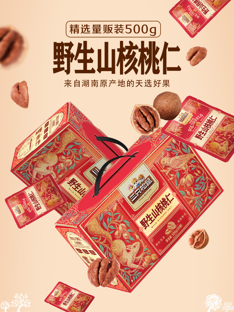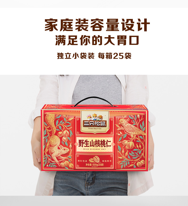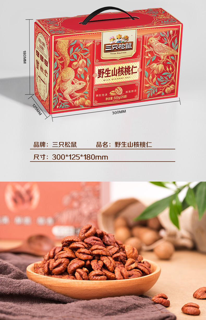 三只松鼠 箱装野生山核桃仁500g 精选大颗粒-fx