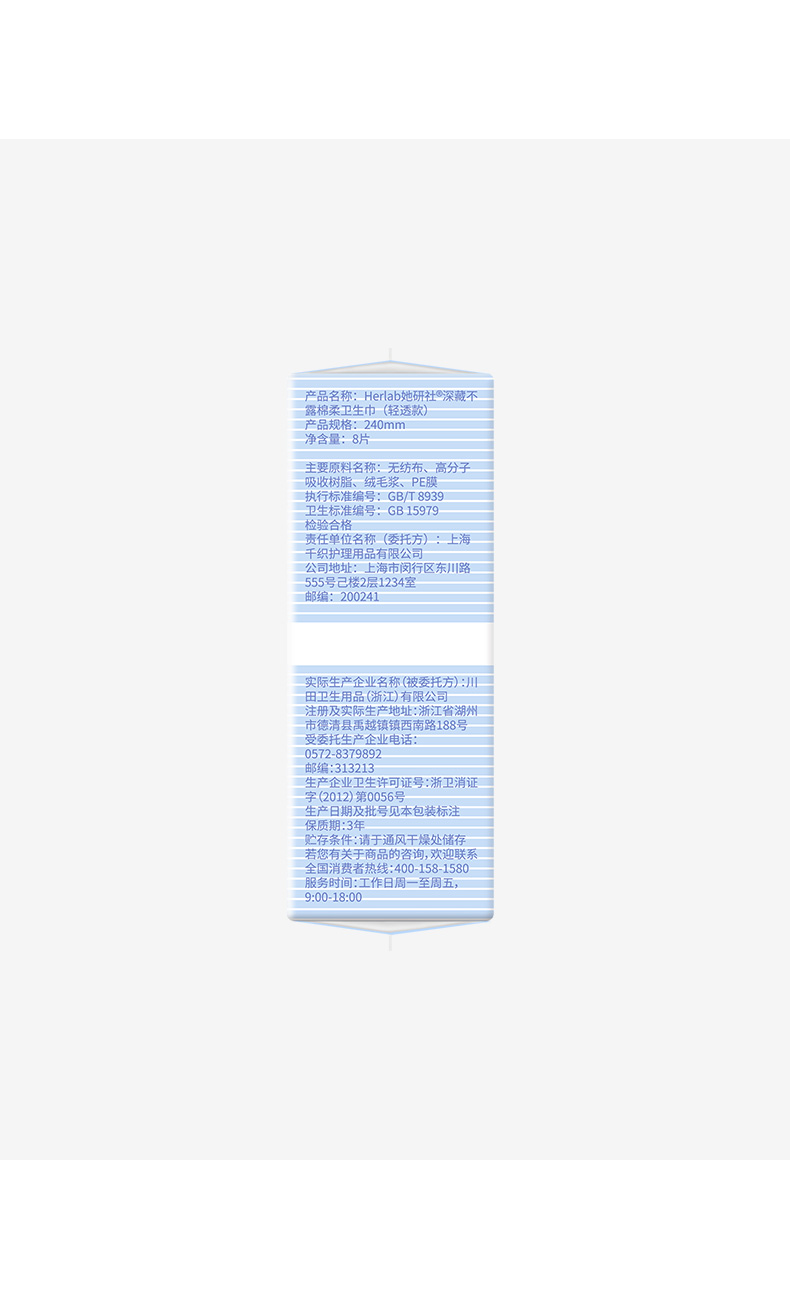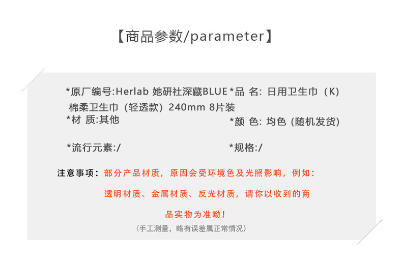 Herlab 她研社深藏BLUE棉柔卫生巾(轻透款)240mm 8片装日用卫生巾