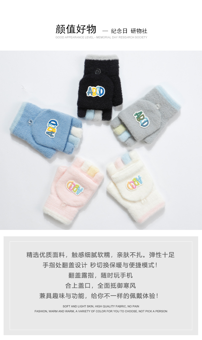 字母爱心设计亲肤儿童翻盖手套-纪念日百货门店同款165295919