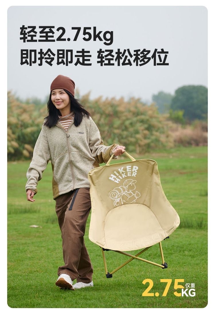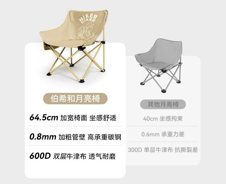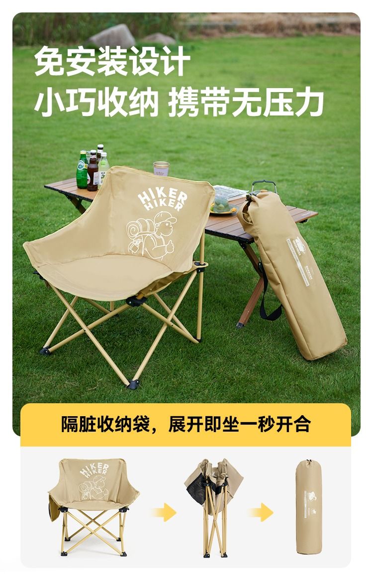 【HIKER】伯希和户外折叠椅子轻量化露营钓鱼月亮椅沙滩休闲便携