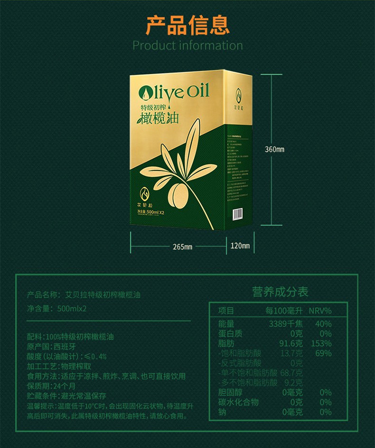 【和美共团圆】艾贝拉特级初榨橄榄油礼盒 500ml*2 包邮直发