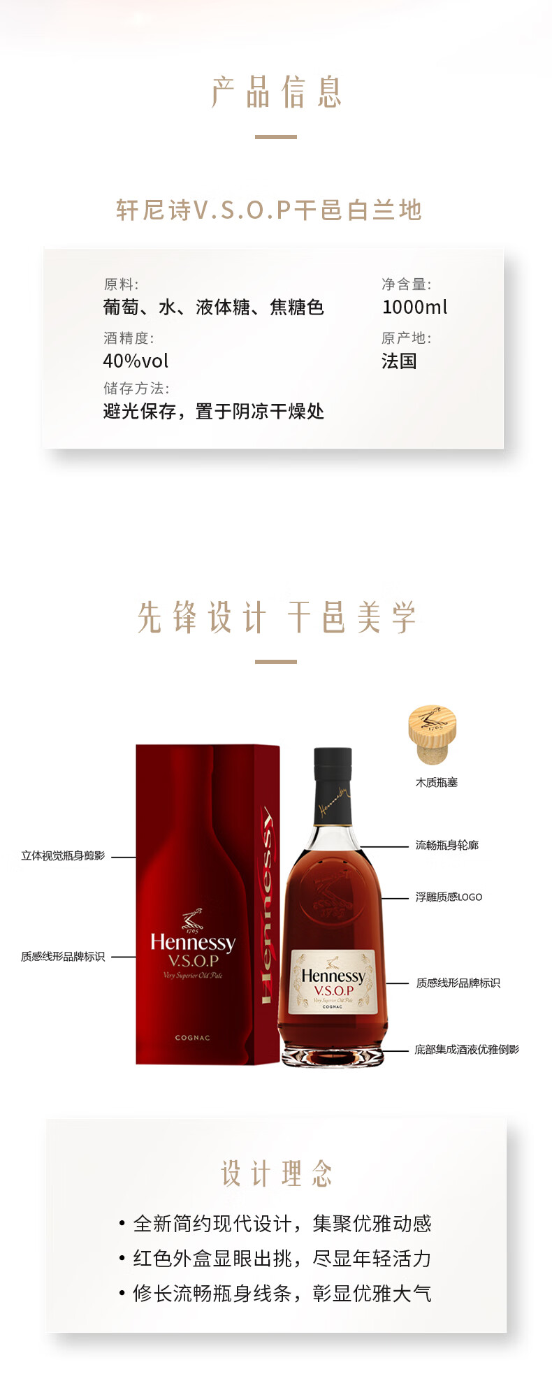 轩尼诗 VSOP干邑白兰地 1000ml/1瓶/2瓶