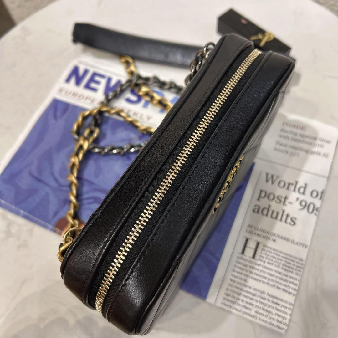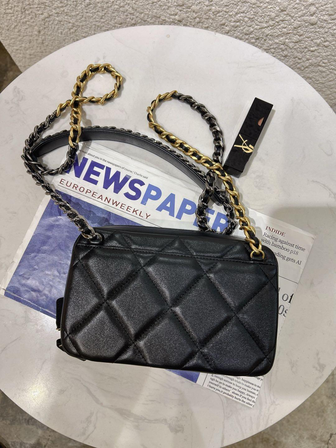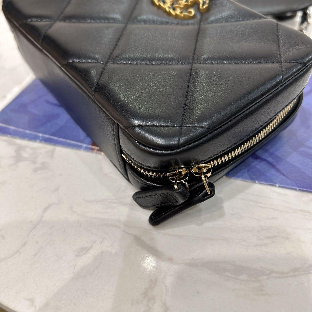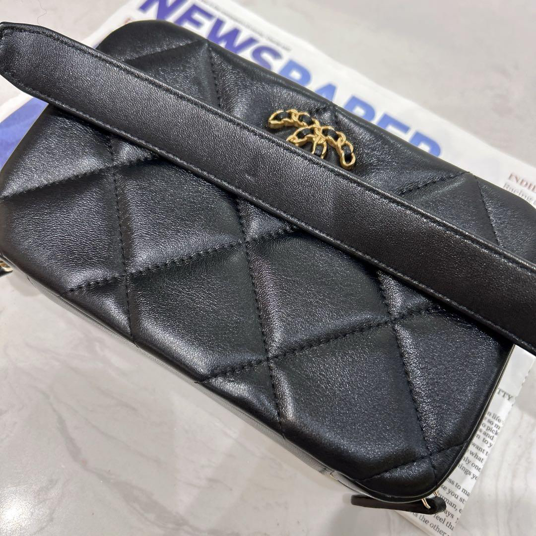 【商品詳情】正品二手 chanel 19bag 黑金 羊皮 相机 斜挎包🎉97新 18x11 镭射32开 配件:盒子。奢华高贵实用
