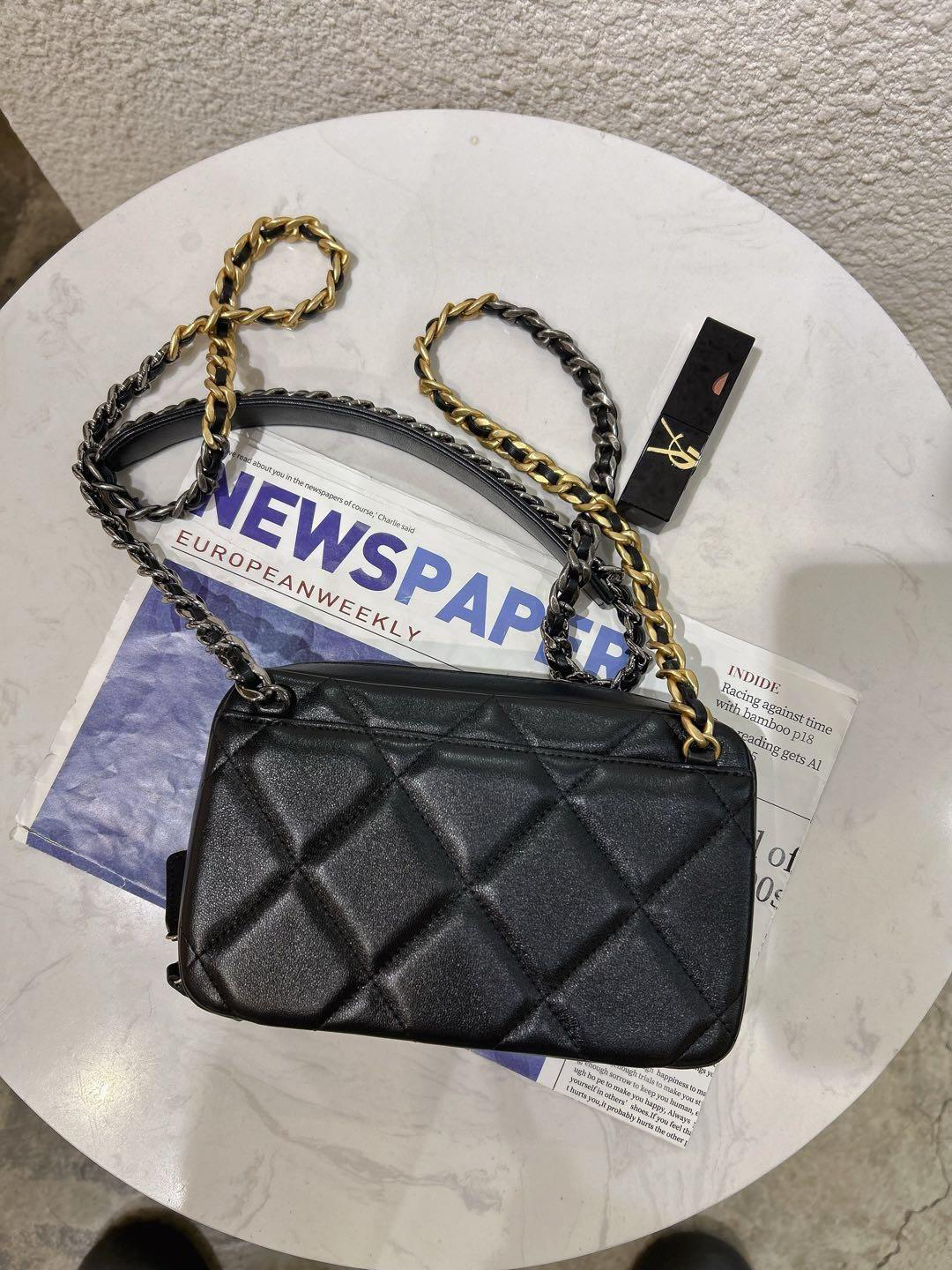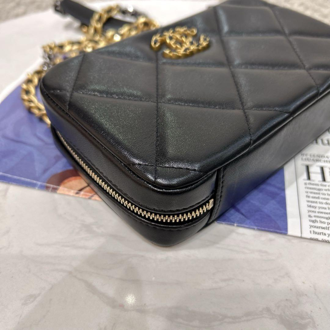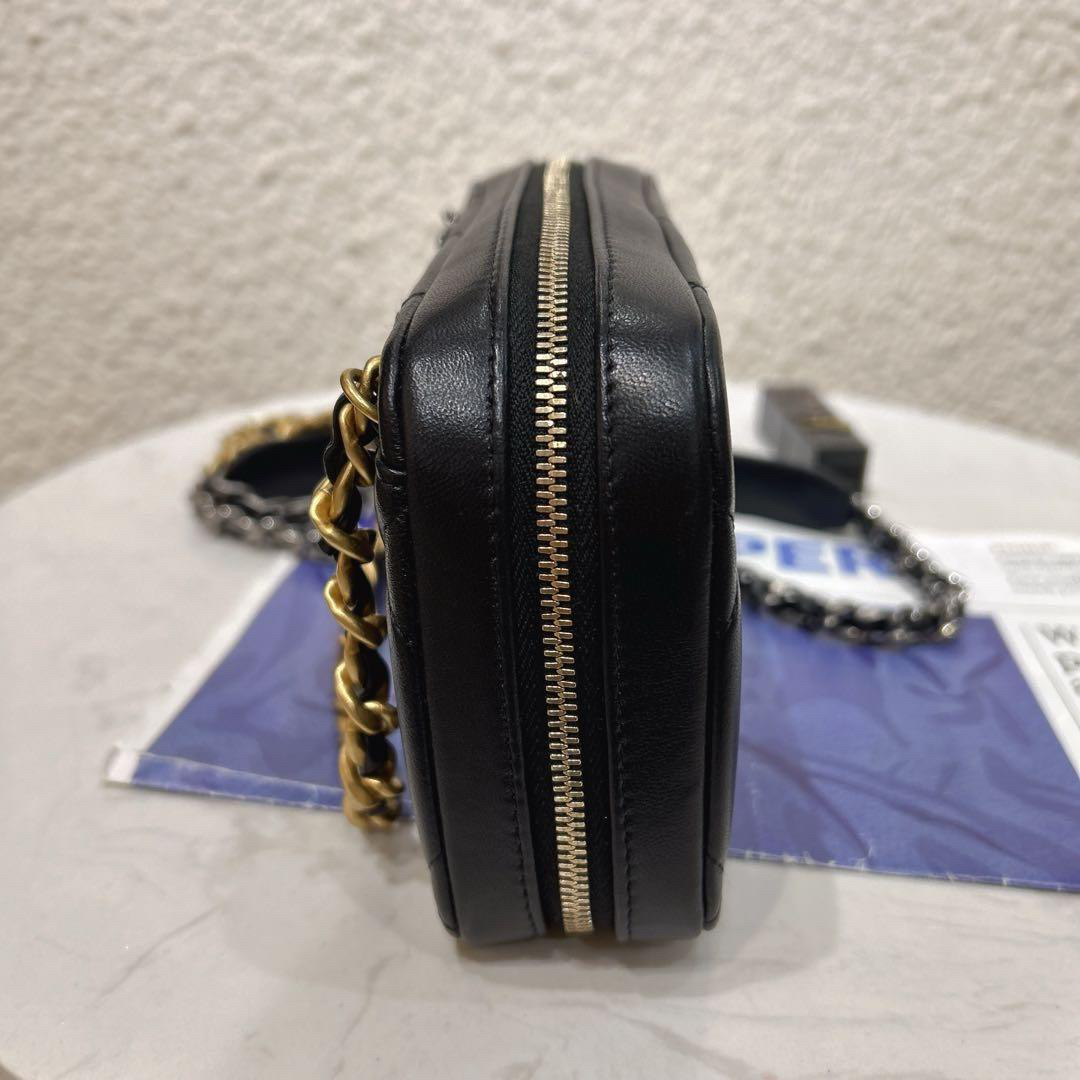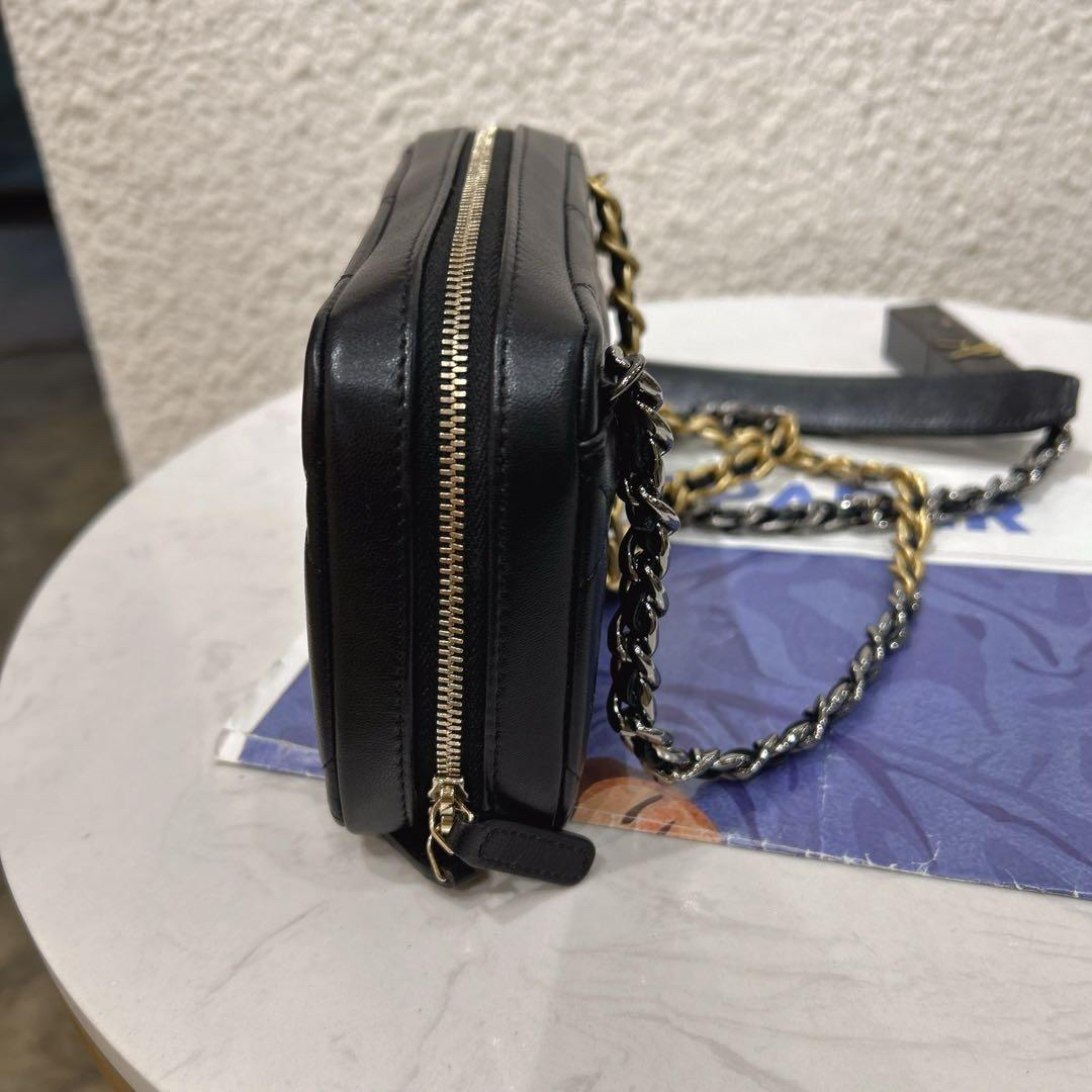 【商品詳情】正品二手 chanel 19bag 黑金 羊皮 相机 斜挎包🎉97新 18x11 镭射32开 配件:盒子。奢华高贵实用
