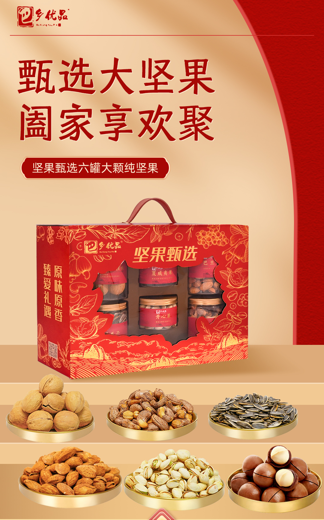 鄂有好货巴乡优品坚果甄选礼盒装B款1080g