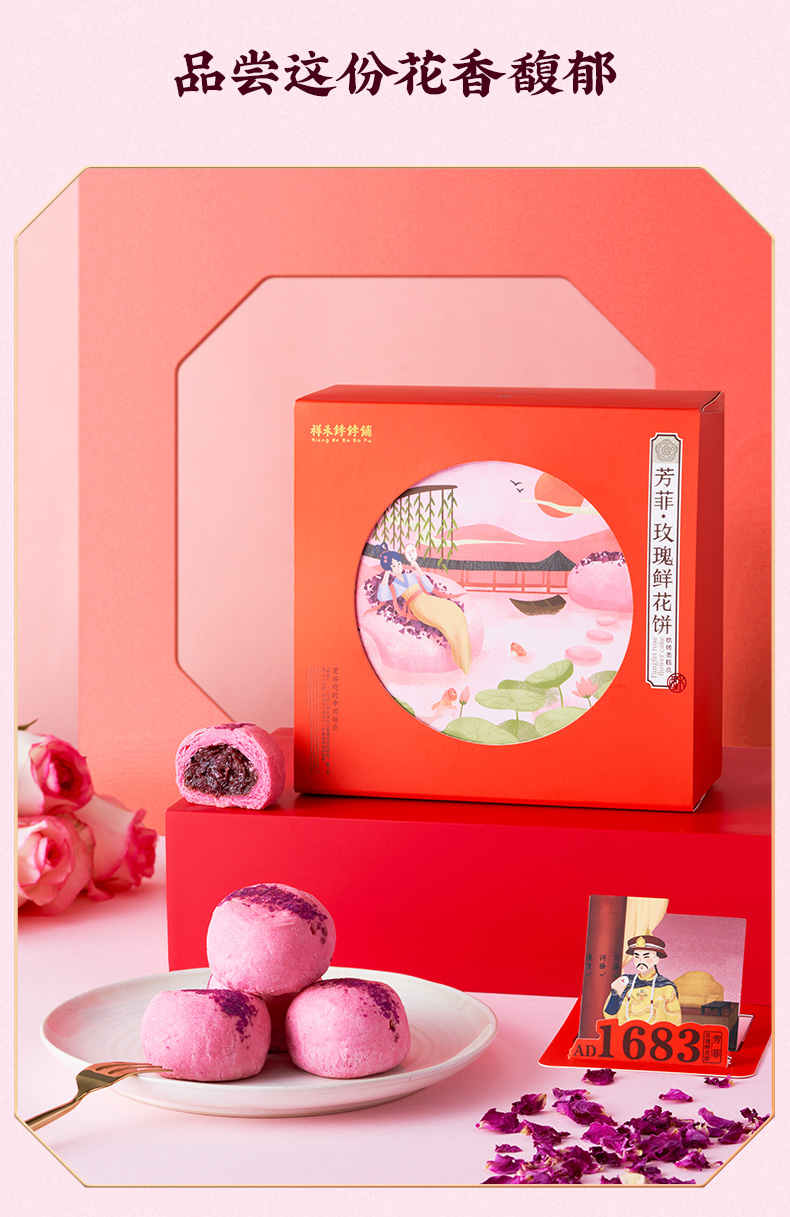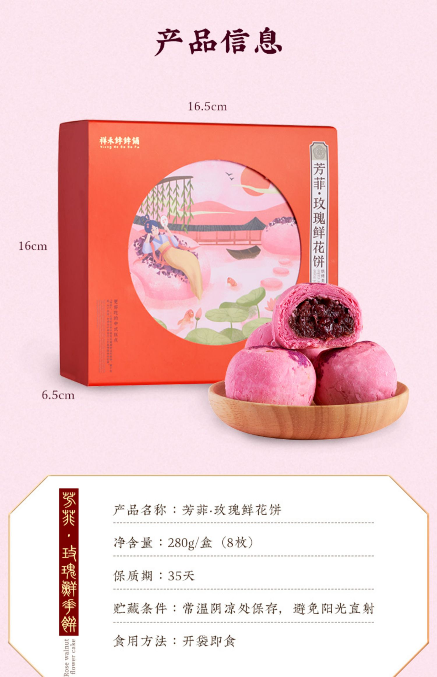 祥禾饽饽铺 芳菲玫瑰鲜花饼2盒装(280g/盒(1盒8枚))