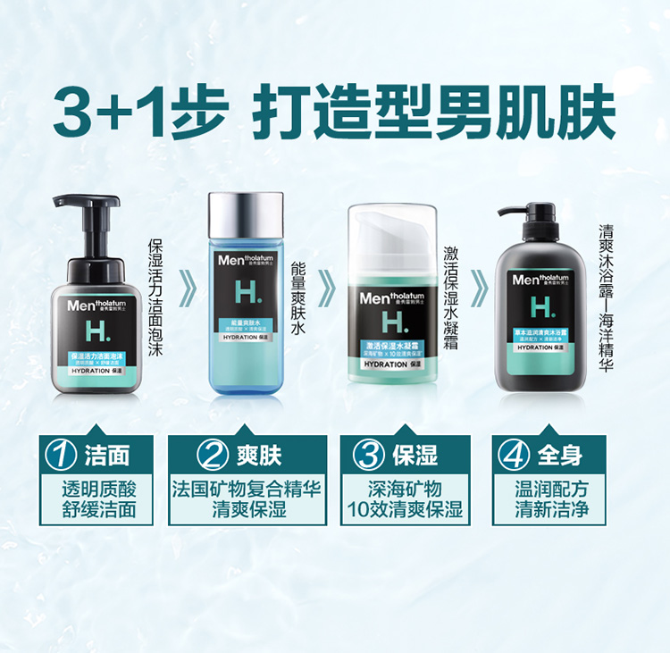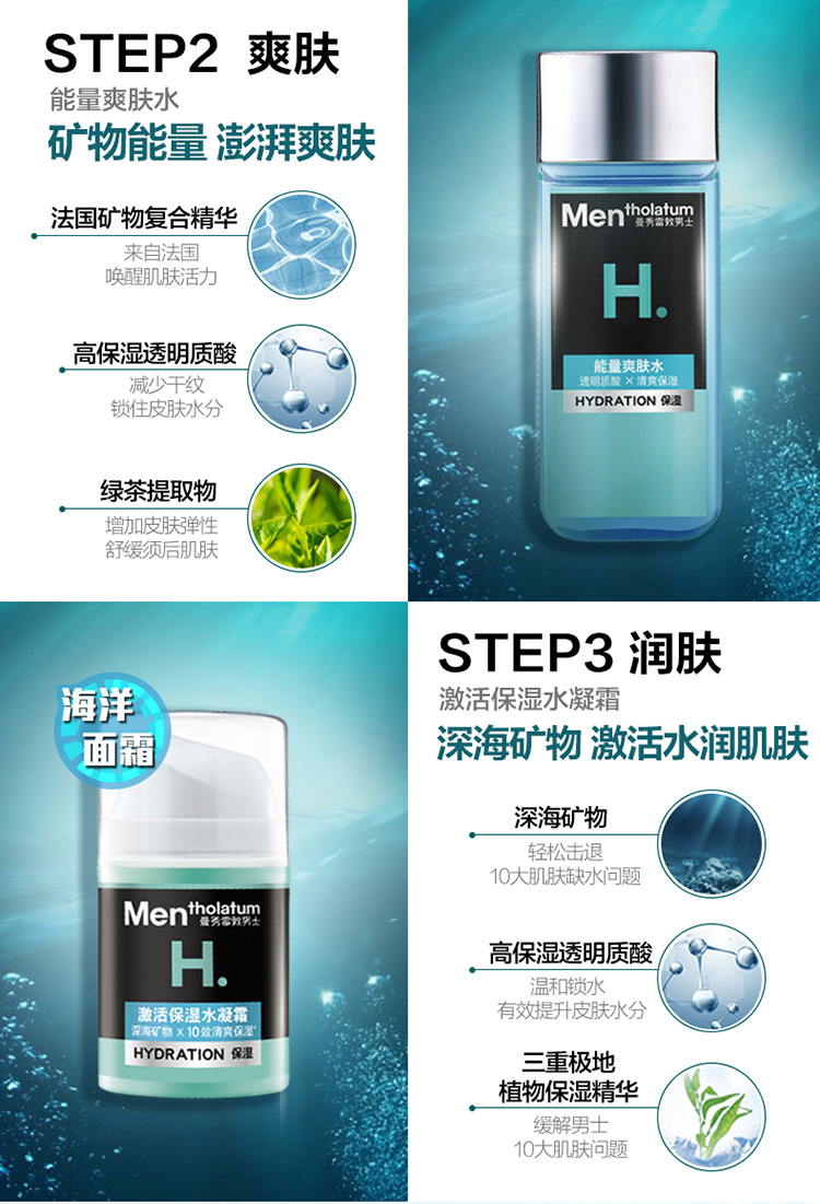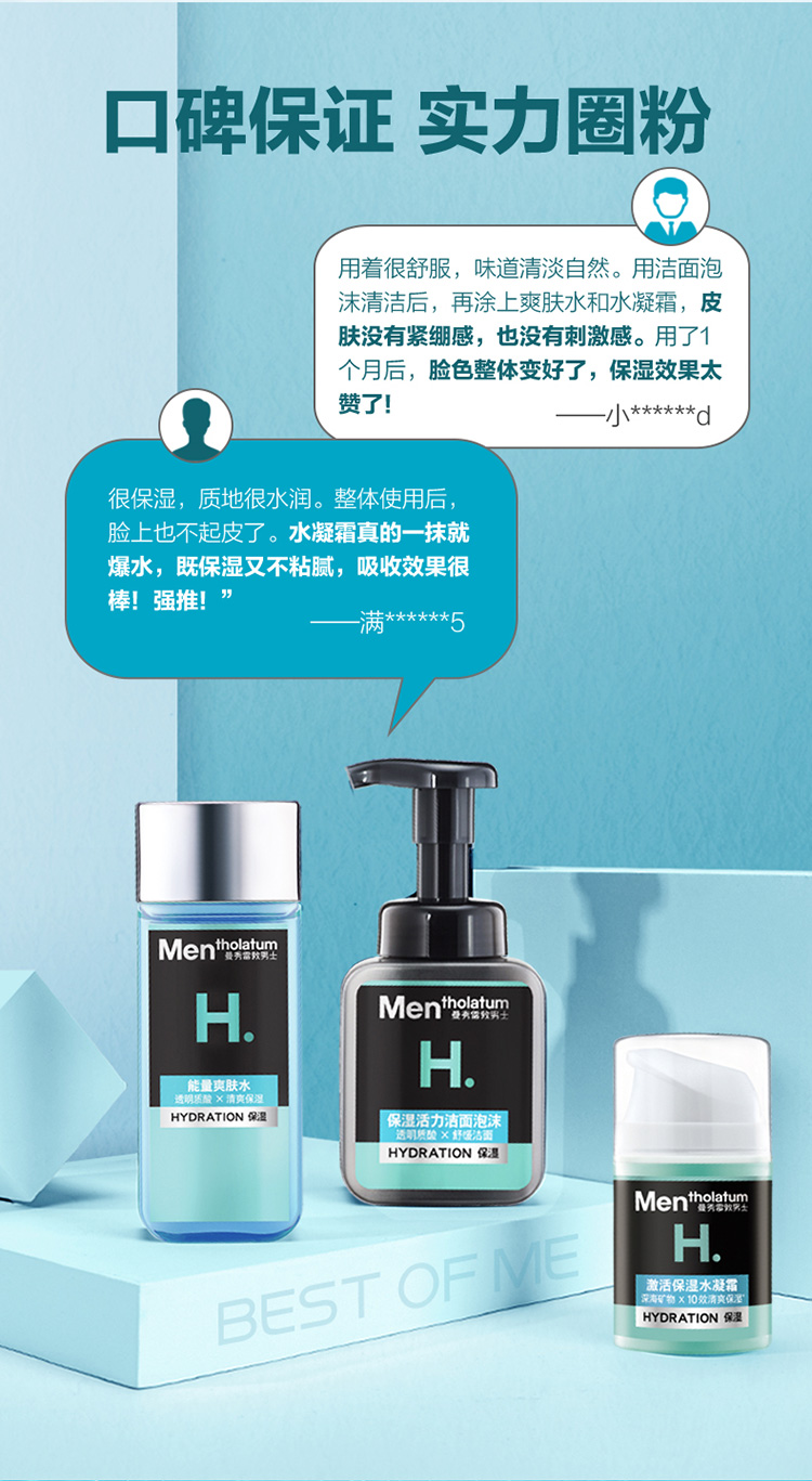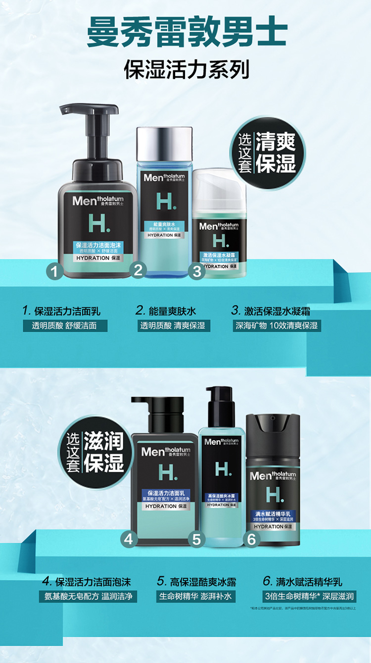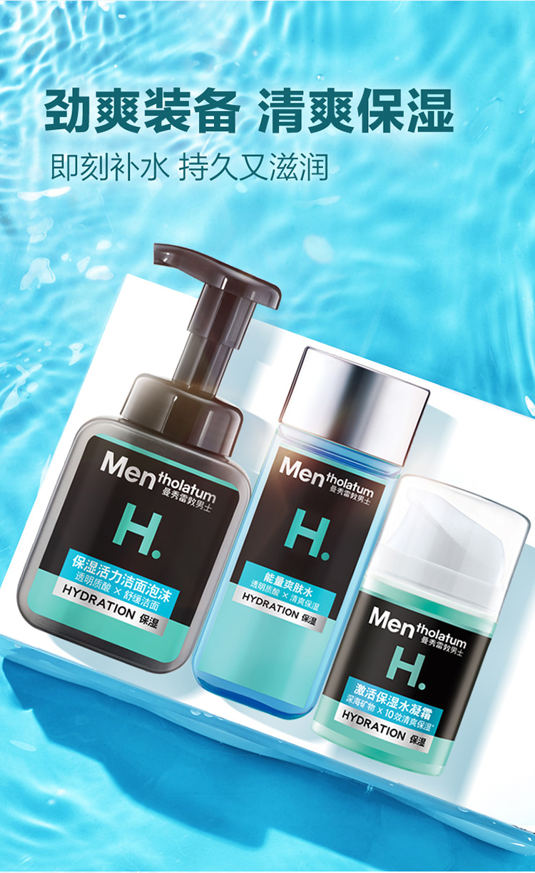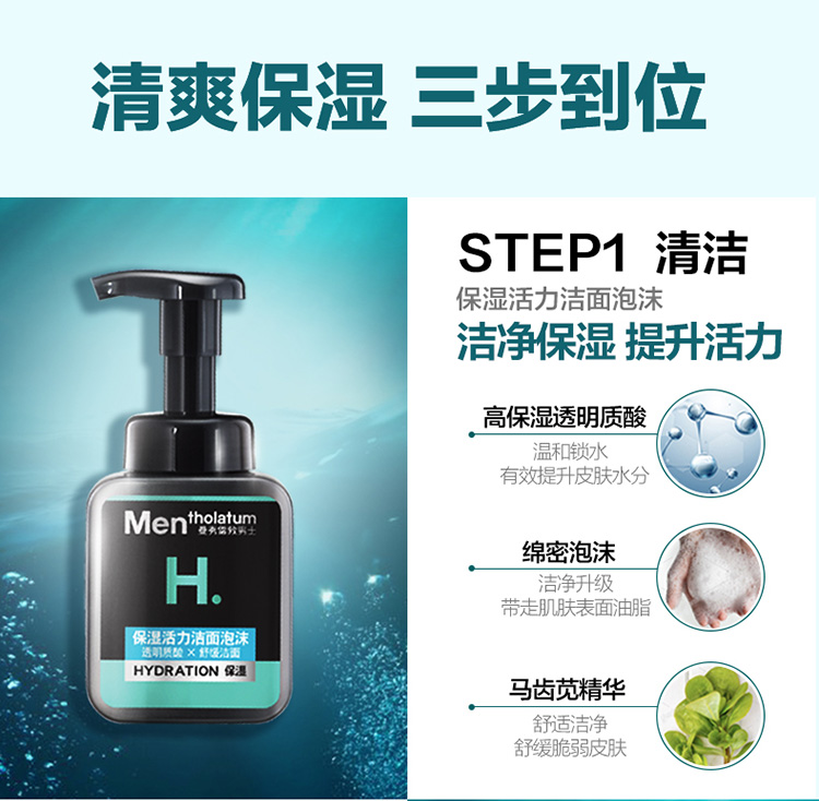 产品明细:保湿活力洁面泡沫150ml+激活保湿水凝霜50ml+能量爽肤水120ml
