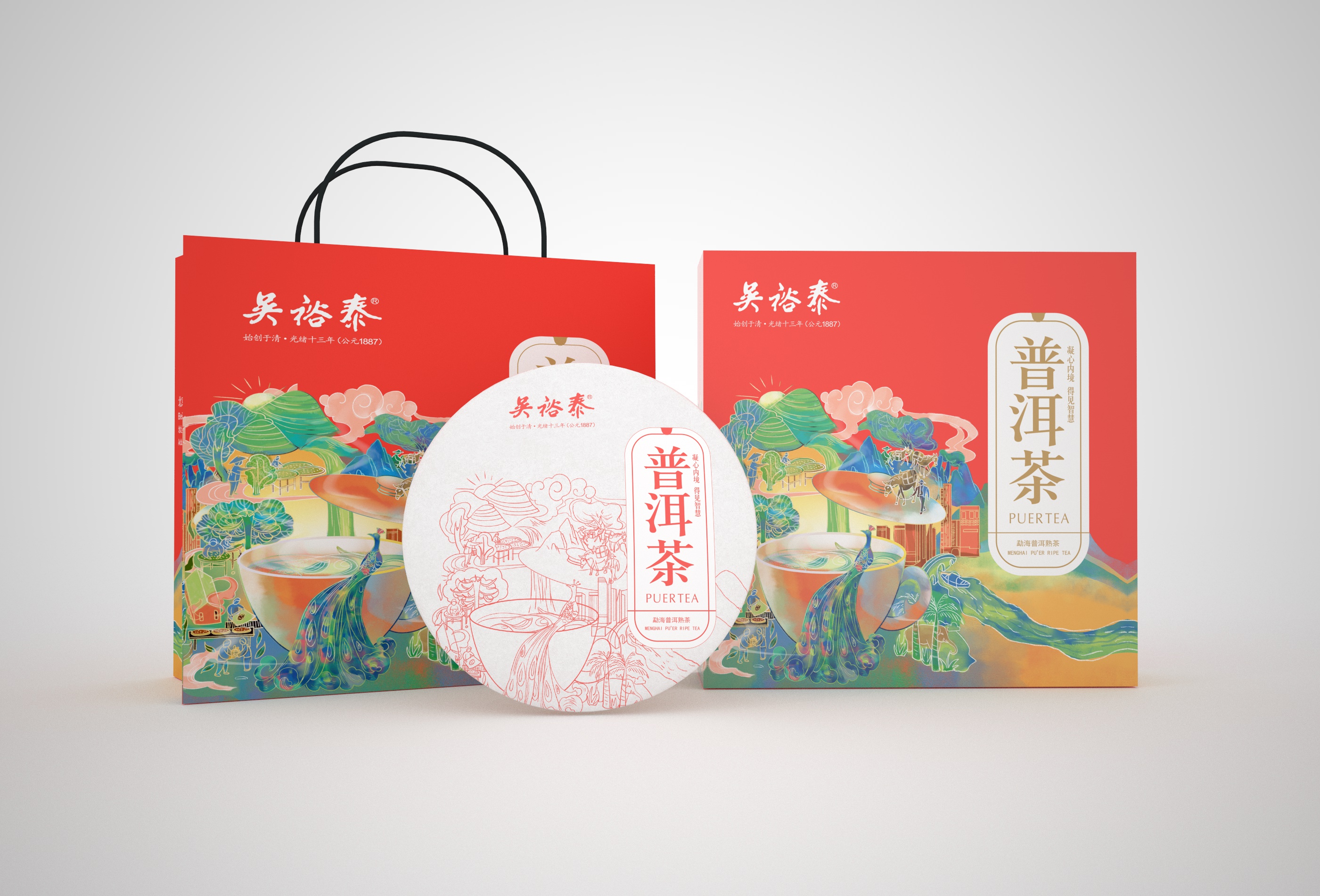 盒面设计展现勐海普洱产区的生态环境,群山环绕,云雾缭绕。同时,盒面精选云南地域文化的代表元素——孔雀、茶马古道,“孔雀”,象征吉祥与美好;勐海是茶马古道的起源,凸显历史价值。设计风格采用时下流行的“新国潮艺术”,画风生动可爱,梦幻多彩,既有“颜值”,又有“内涵”。包装精美时尚,自用或送礼皆宜。