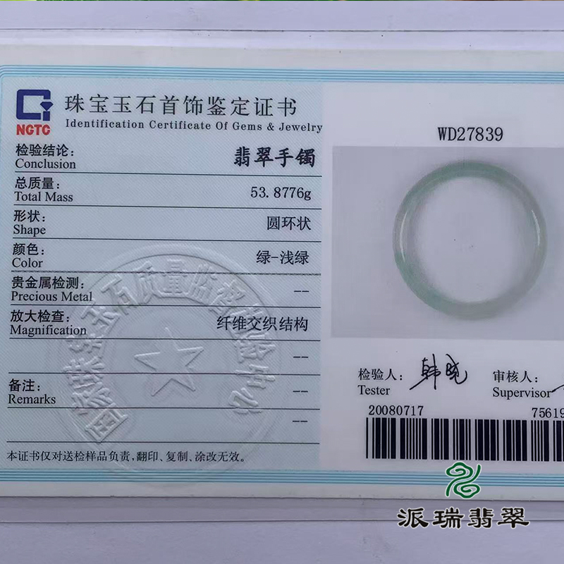 派瑞翡翠 翡翠手镯 糯种 浅绿