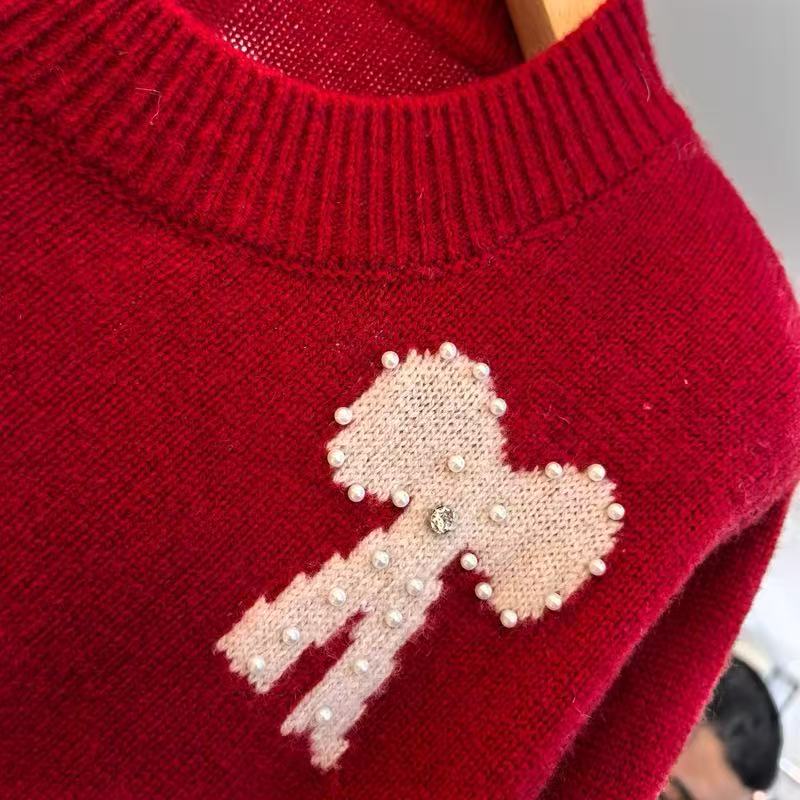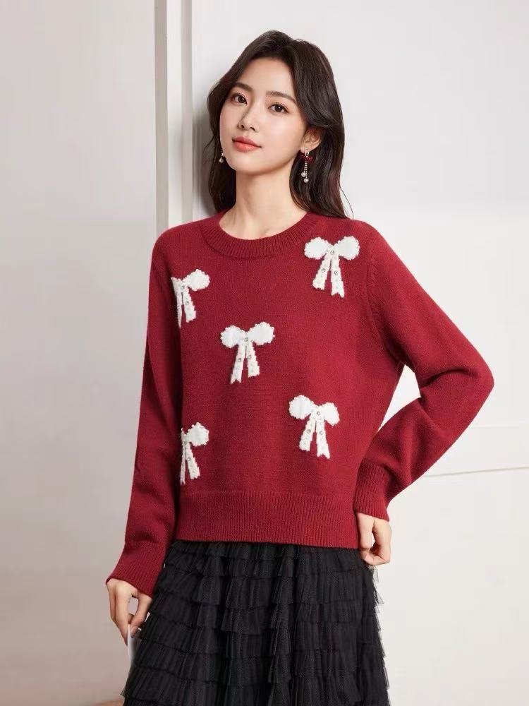 女装25秋冬新品圆领蝴蝶结羊毛针织衫2217-118989