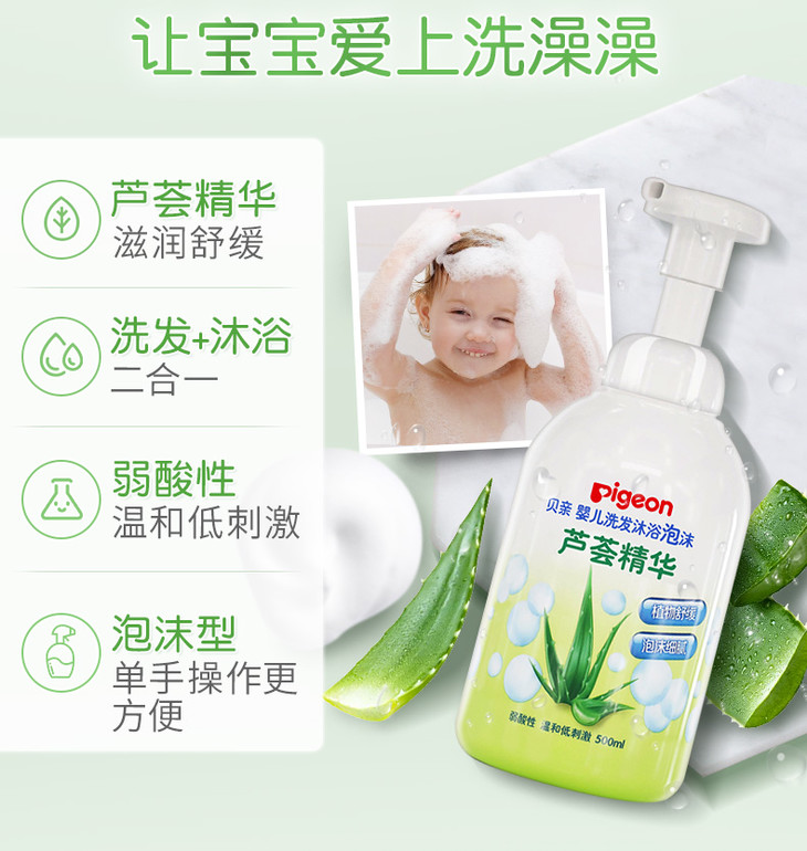 贝亲婴儿洗发沐浴泡沫芦荟精华500mlIA230