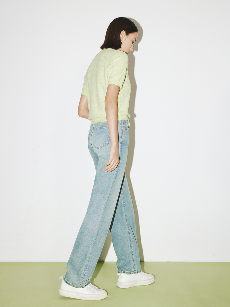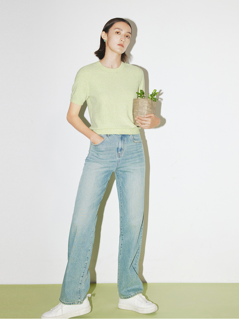 【商场同款】诗凡黎藏青高腰直筒休闲裤2025春新款长裤3G1150301